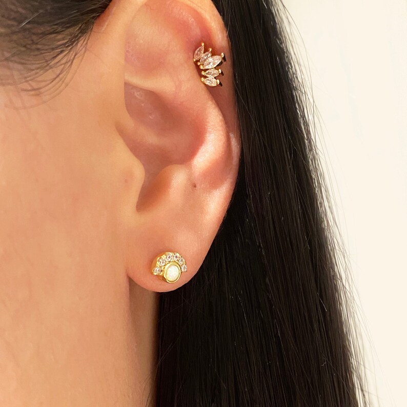 Leaf helix earring clearance, Pave Leaf Cartilage Earring, Conch stud, Helix stud, Cartilage stud, Flat Back Earring, Jewel clearance