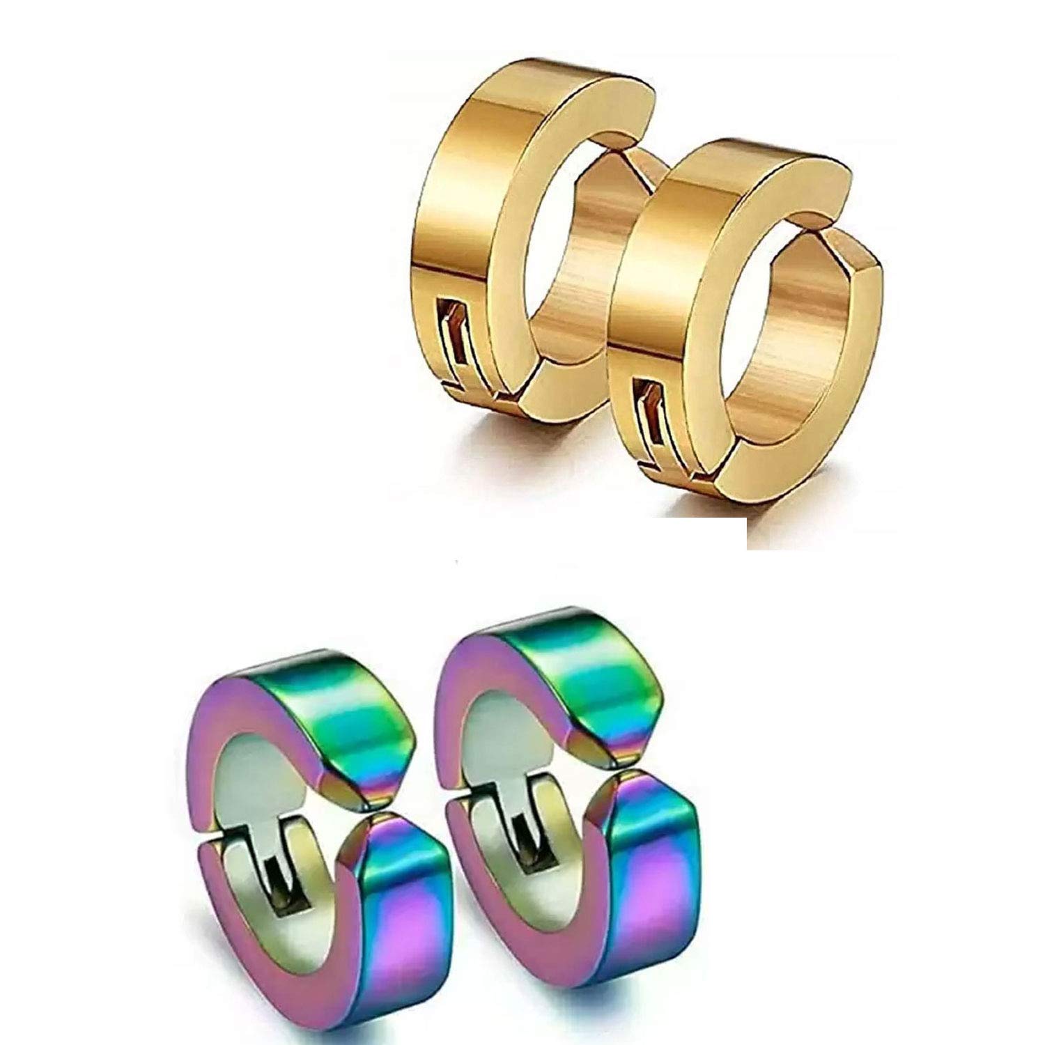 Rainbow earrings amazon clearance, Buy Raur 2 Pair Rainbow Gold studs Earring Bali Non Pierced Hoop Earrings Combo For Men / Gents clearance
