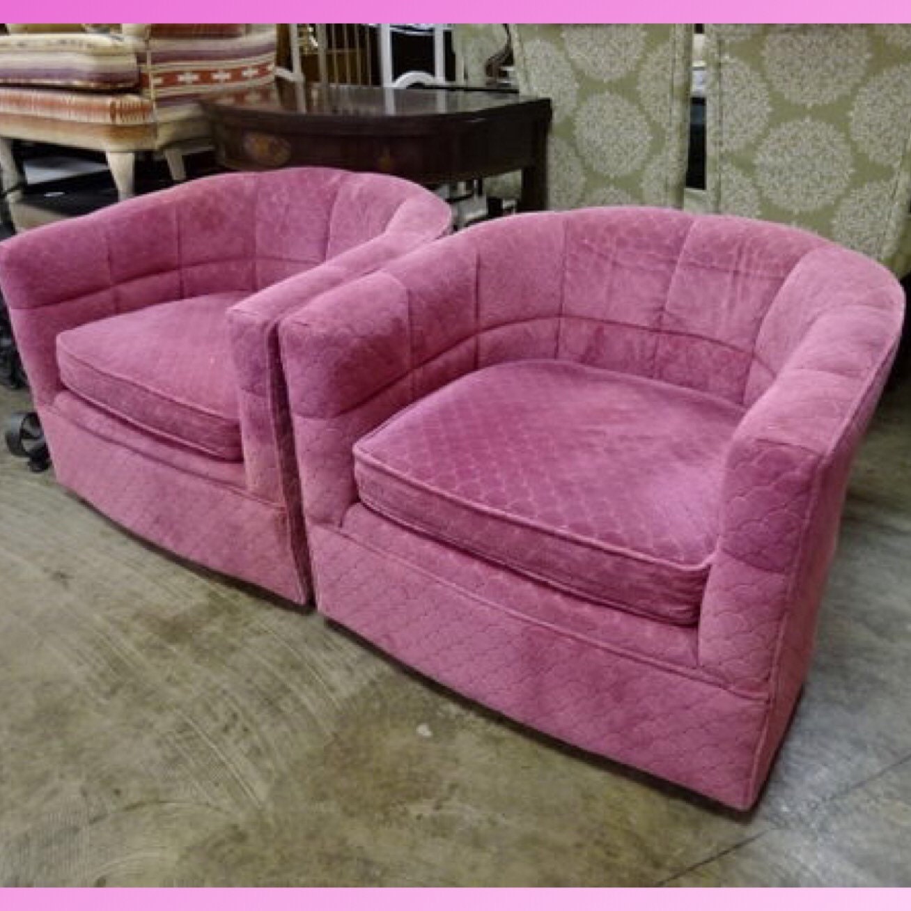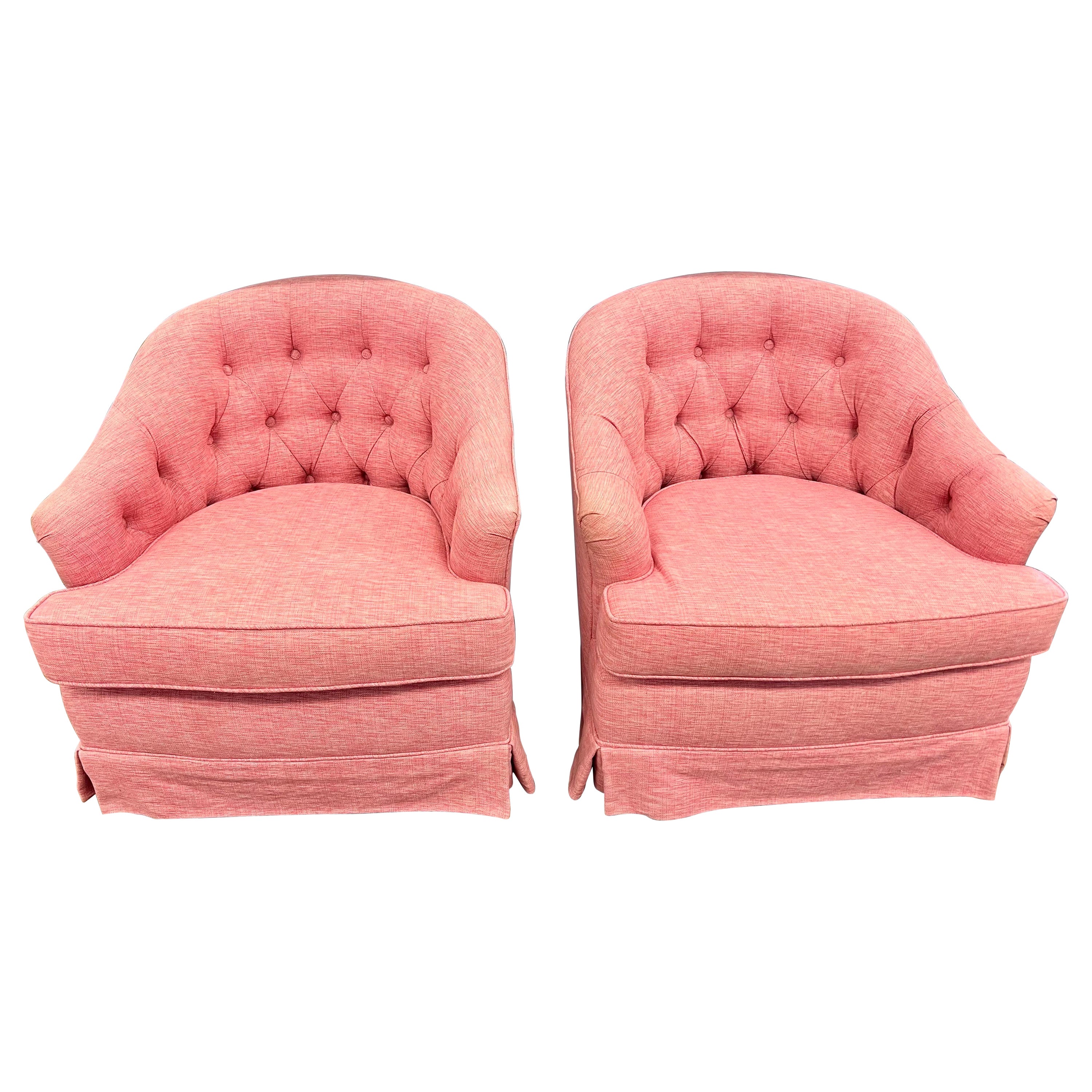 Pink swivel barrel chair clearance, Vintage Hot Pink Channel Backed Swivel Chairs - A Pair - Park + Eighth clearance