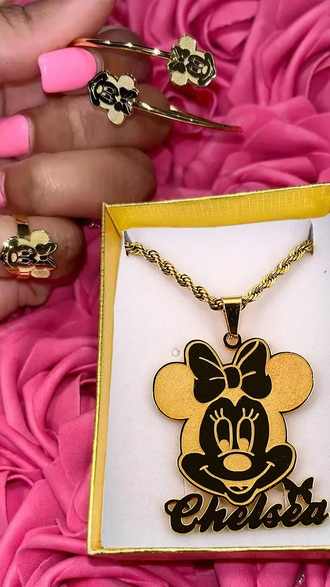 Kids cartoon character necklace clearance, Stainless Steel Cute Custom Cartoon Character Necklace Ring Jewelry Set Personalized Bracelet clearance