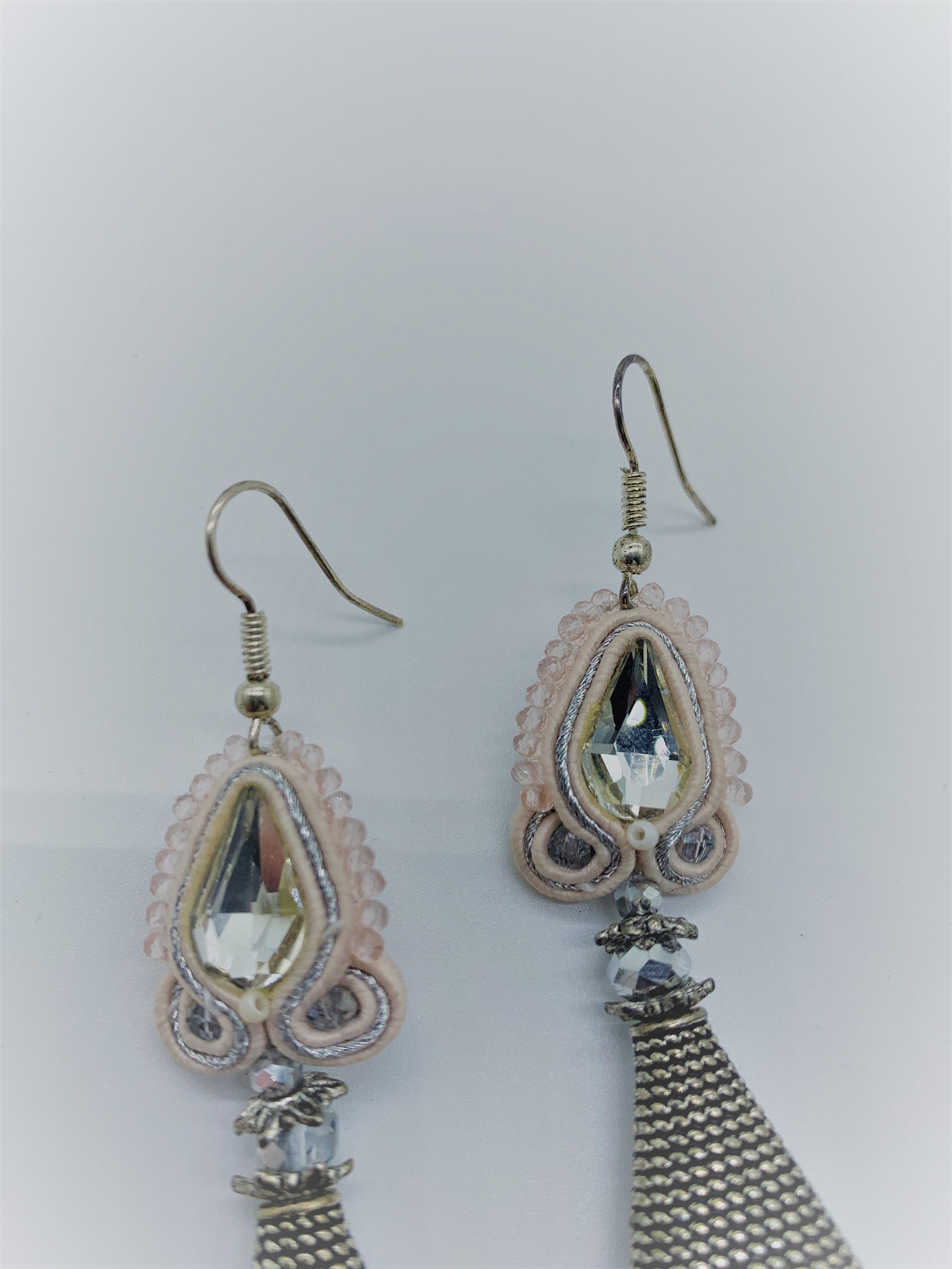 Light pink earrings clearance, Handmade light pink earrings with feathers matlic details | Etsy clearance