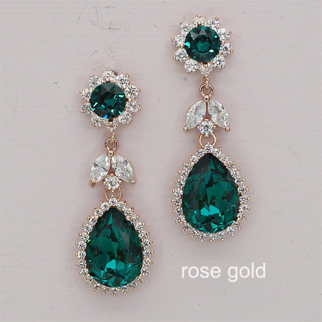 Emerald wedding earrings clearance, Emerald Bridal Earrings Bridesmaid Gift Wedding Prom Party Swarovski Teardrop Emerald Green clearance