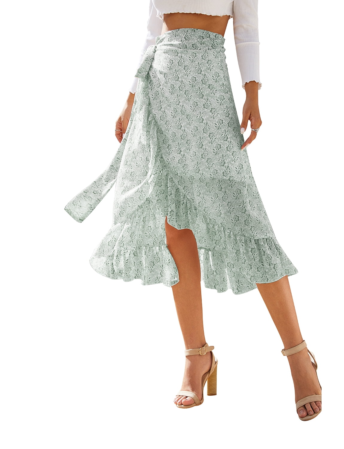 - Wrap midi skirt with ruffle hem free shipping