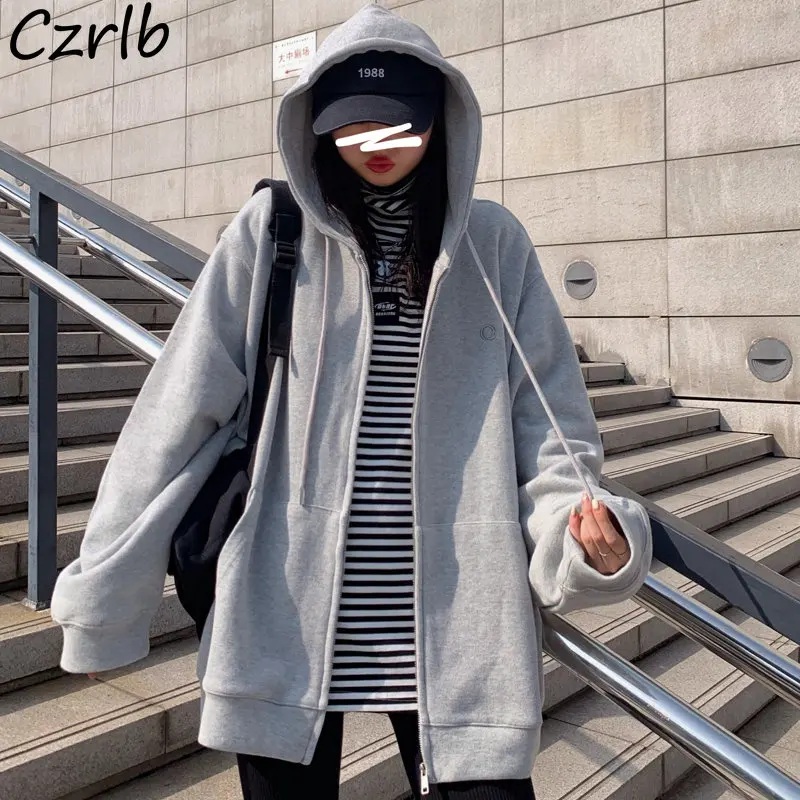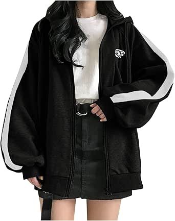 Zip up baggy hoodie clearance, Womens Oversized Zip Up Hoodie Y2K Jacket Baggy Loose Basic Zipper Hooded Sweatshirt Coat At clearance