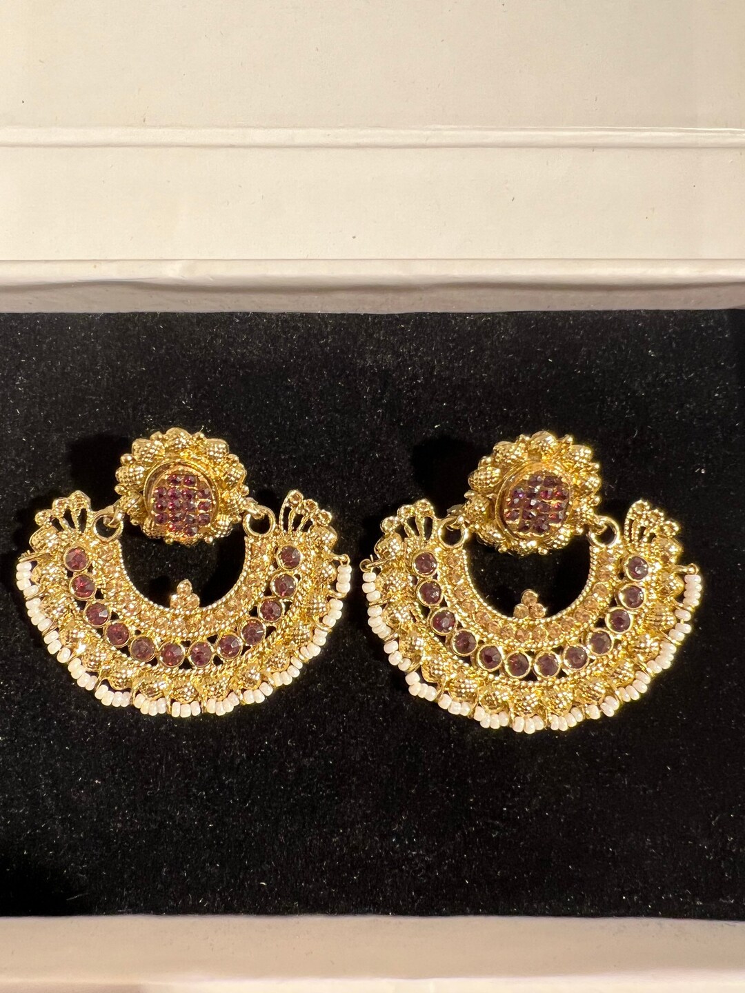 Ramleela design earrings clearance, Purple Earrings Ramleela Pakistani Indian Fan Shape Kundan Polki Design - Etsy clearance