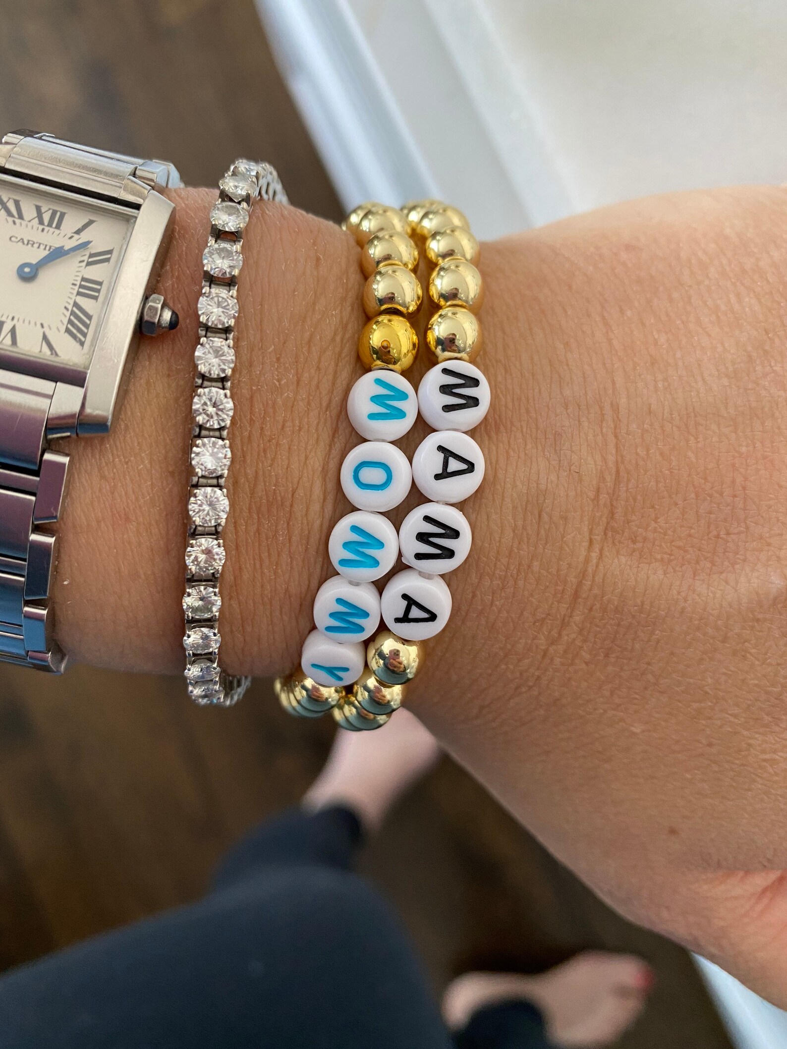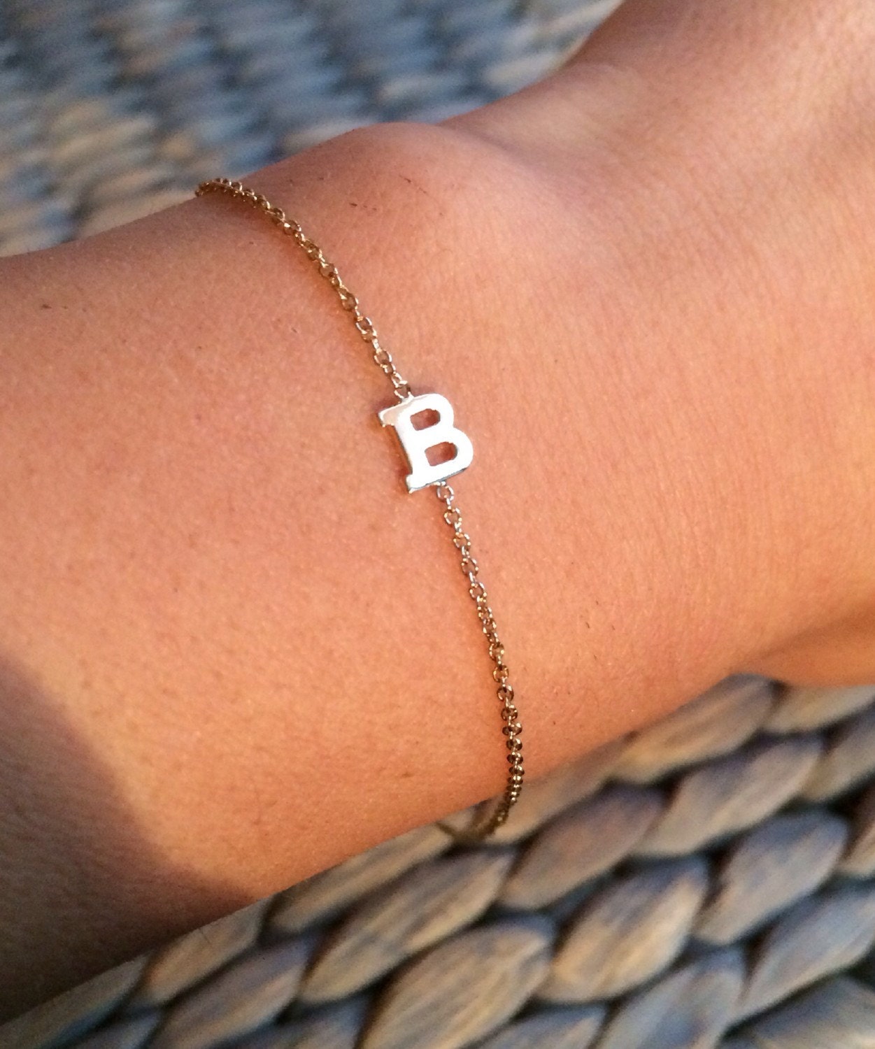 - Gold bead initial bracelet