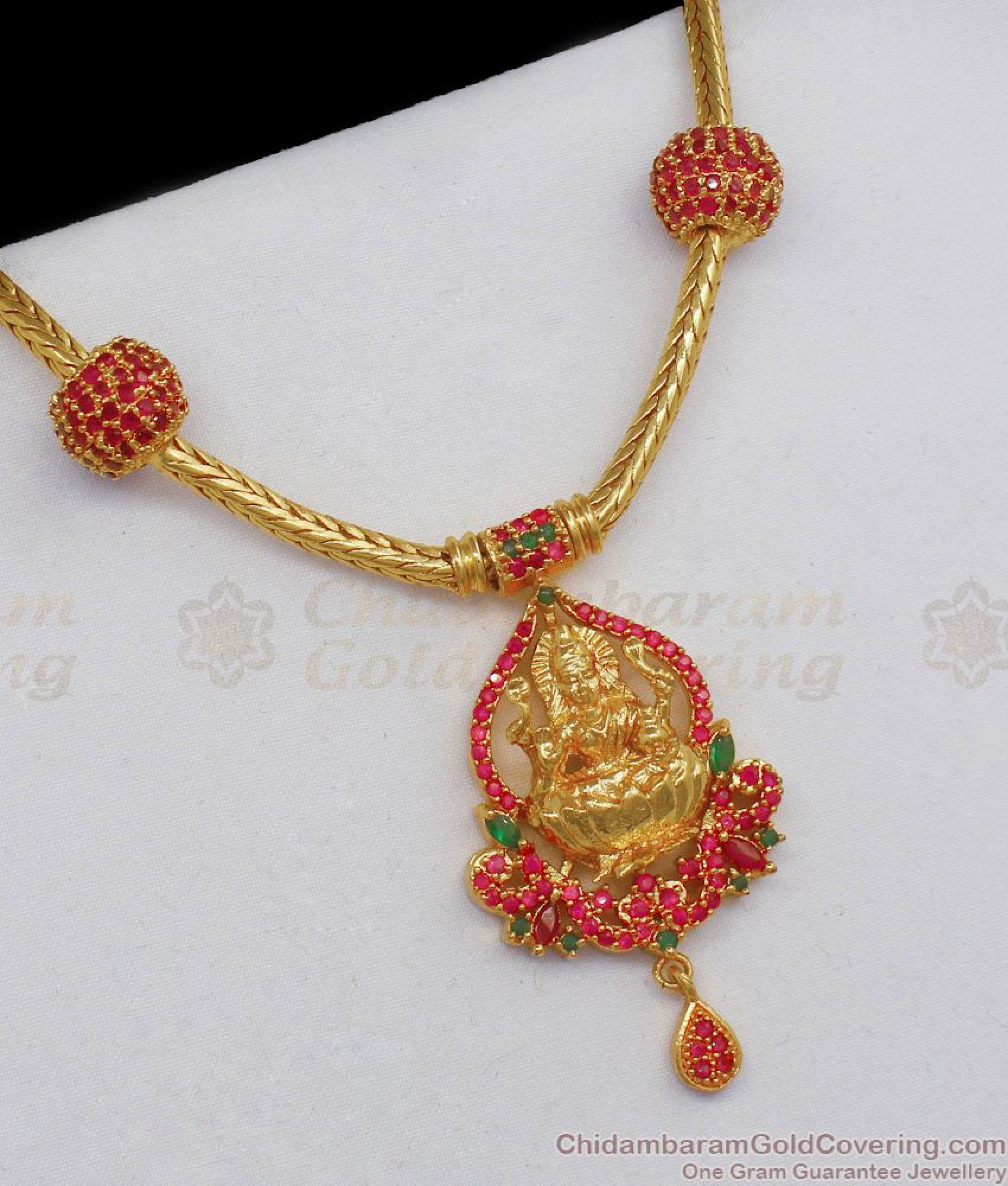 Lakshmi dollar chain designs clearance, New Arrival Ruby And Emerald Stone Gold Lakshmi Dollar Chain Designs Jewelry Buy Online BGDR649 clearance