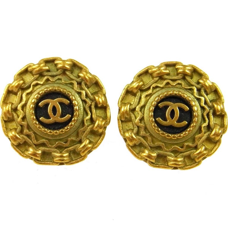 Chanel chain link earrings clearance, Chanel Gold Textured Chain Link Charm Evening Stud Earrings For Sale at 1stDibs clearance