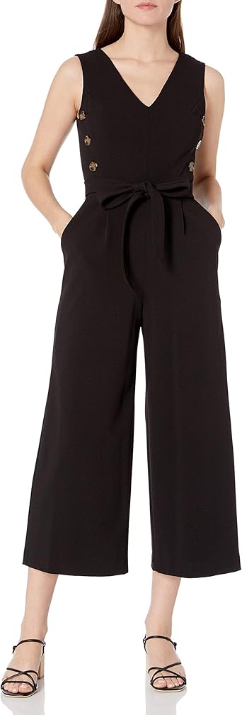V neck cropped jumpsuit clearance, V-Neck Cropped Jumpsuit Black Size clearance