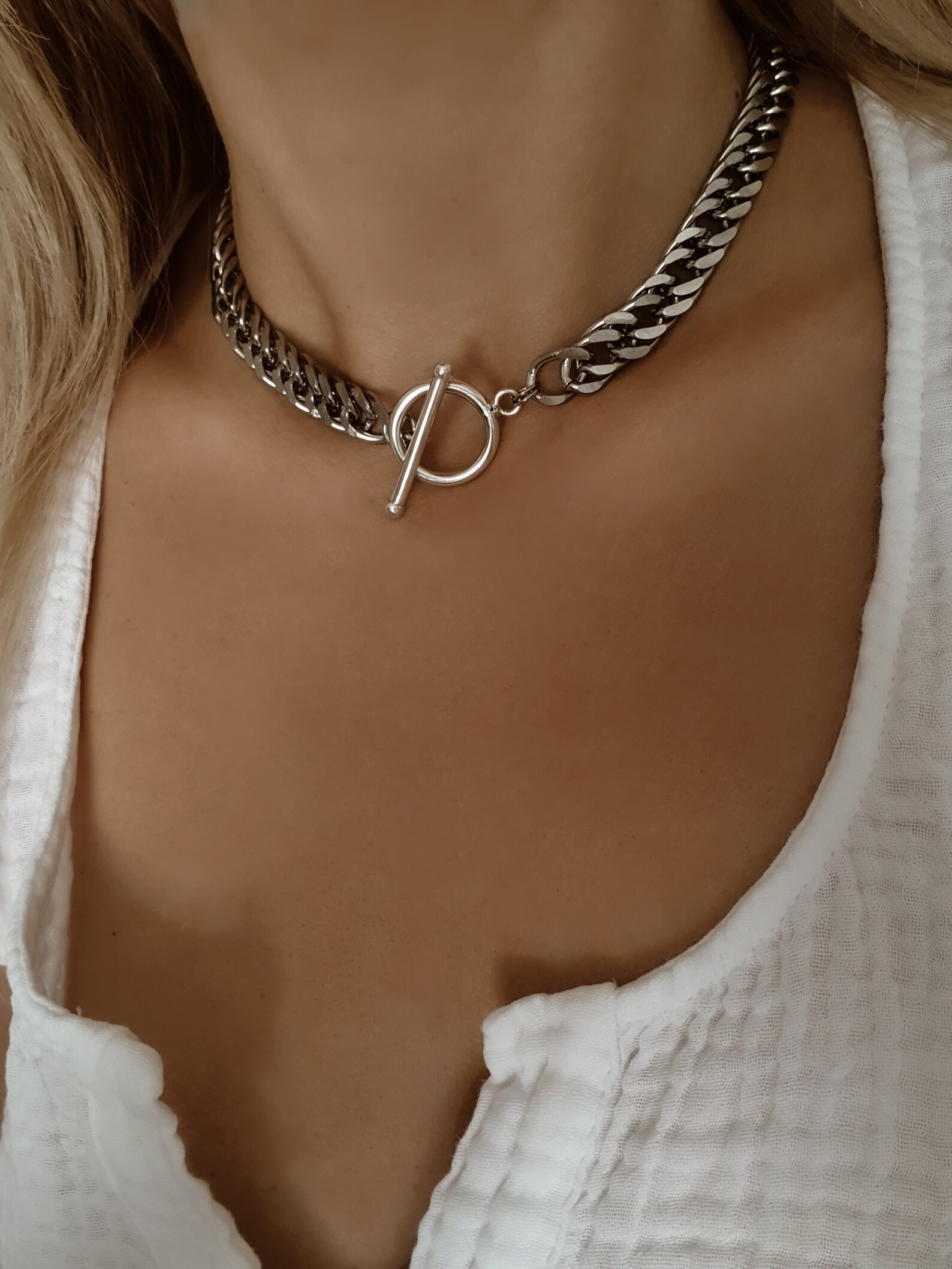 - Silver curb chain choker
