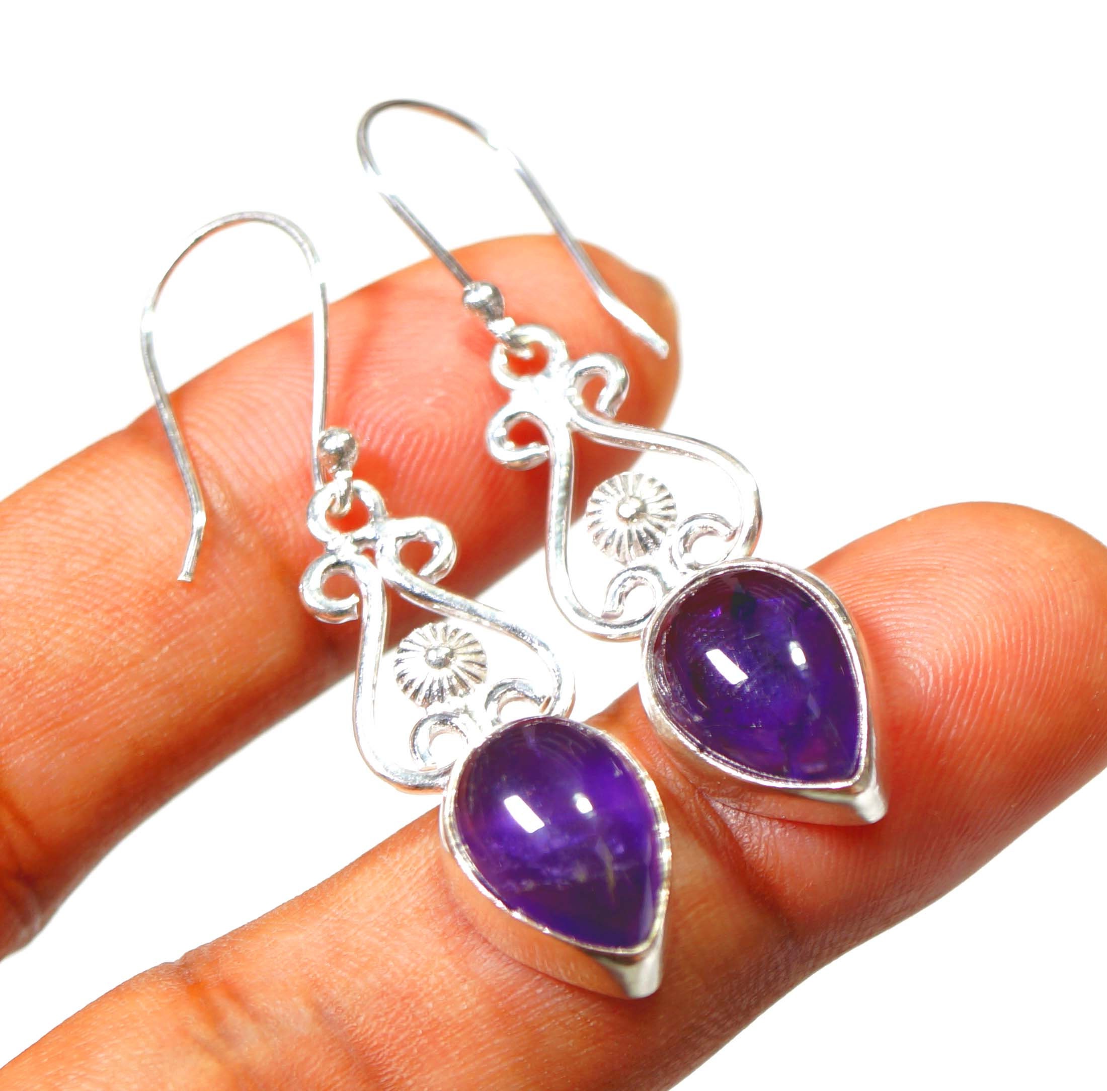 Purple gemstone earrings clearance, Natural Oval Shape Purple Amethyst Gemstone Earring - 925 Sterling Silver Handmade Women clearance