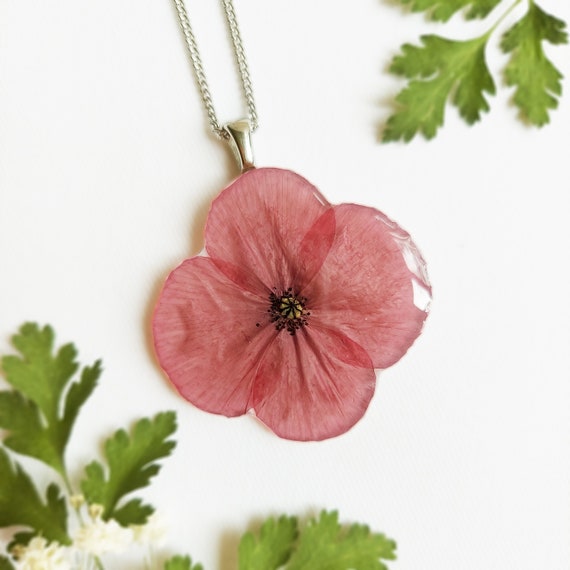 Poppy pendant clearance, Poppy Pendant Pressed Poppy Necklace Remembrance Necklace - Etsy clearance