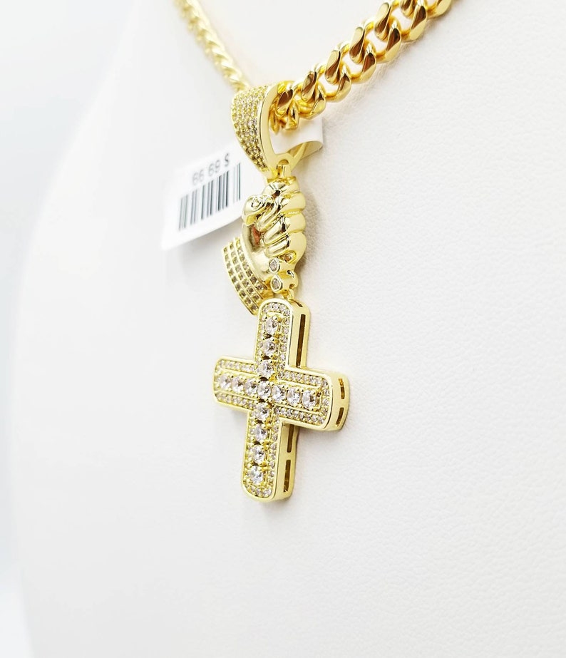 Iced out praying hands pendant clearance, 14k Gold Plated Praying Hands Pendant Iced Out Cz 20" Curb Chain Necklace - Necklaces & Pendants clearance