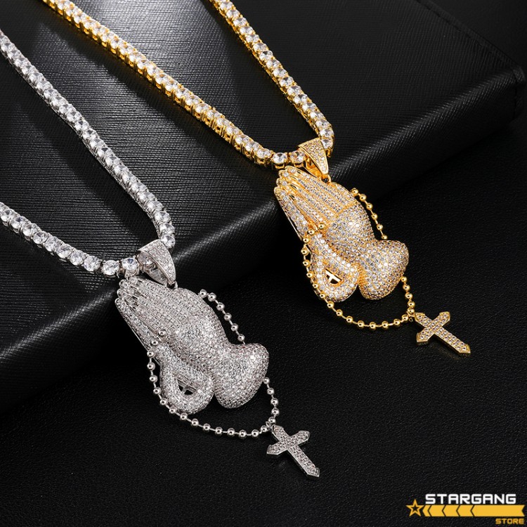 - Iced out praying hands pendant clearance