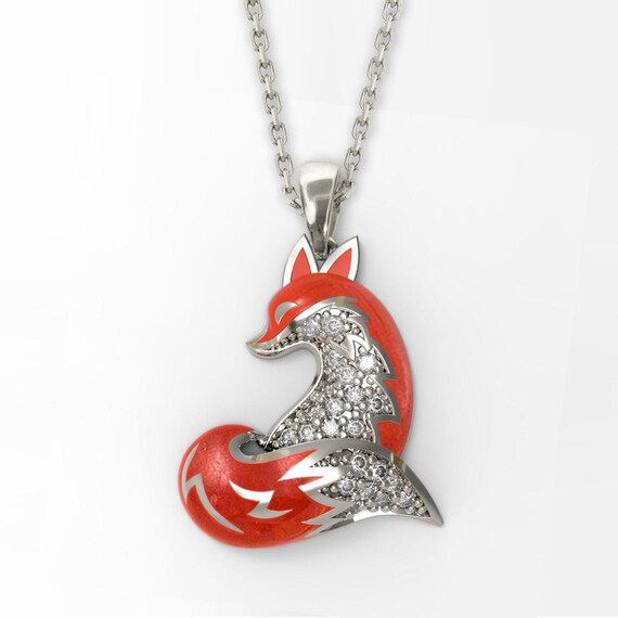 Fox pendant necklace clearance, Silver fox pendant with colored stone eyes. SATIN finish | Etsy | Diamond eyes, Fox pendant, Fox clearance