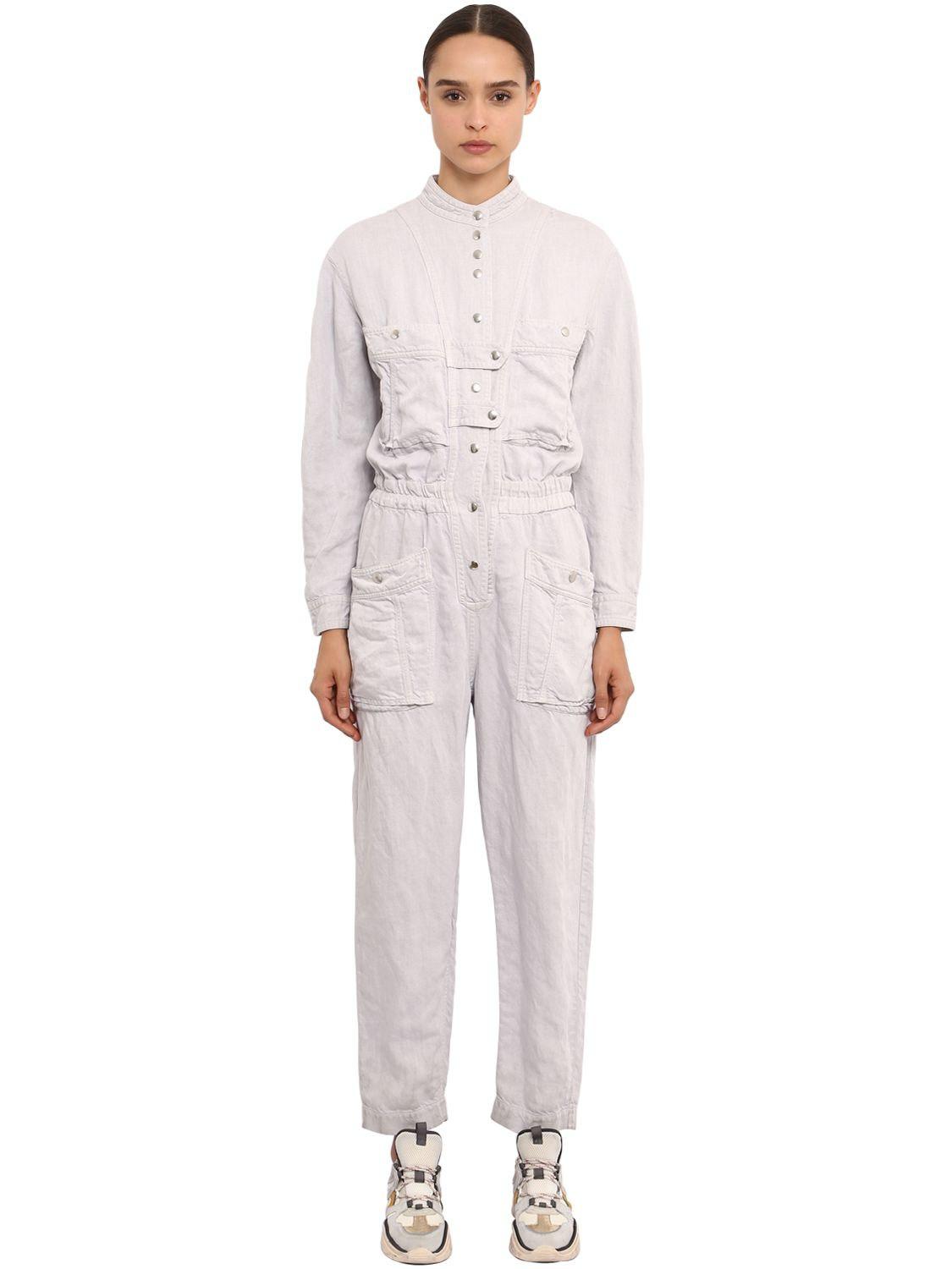 - Cheap White linen jumpsuit long sleeve