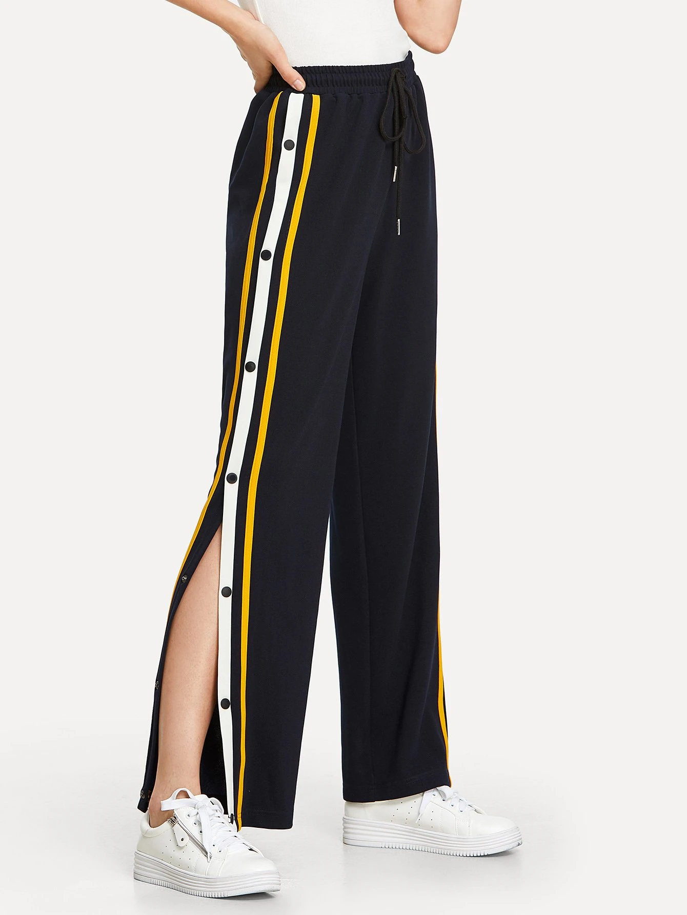 - Cheap Snap button striped side pants