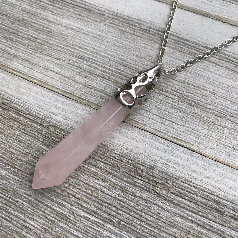 Rose quartz healing necklace clearance, Rose Quartz Crystal Point Necklace // Faceted Double | Etsy | Boho crystal necklace, Crystal clearance