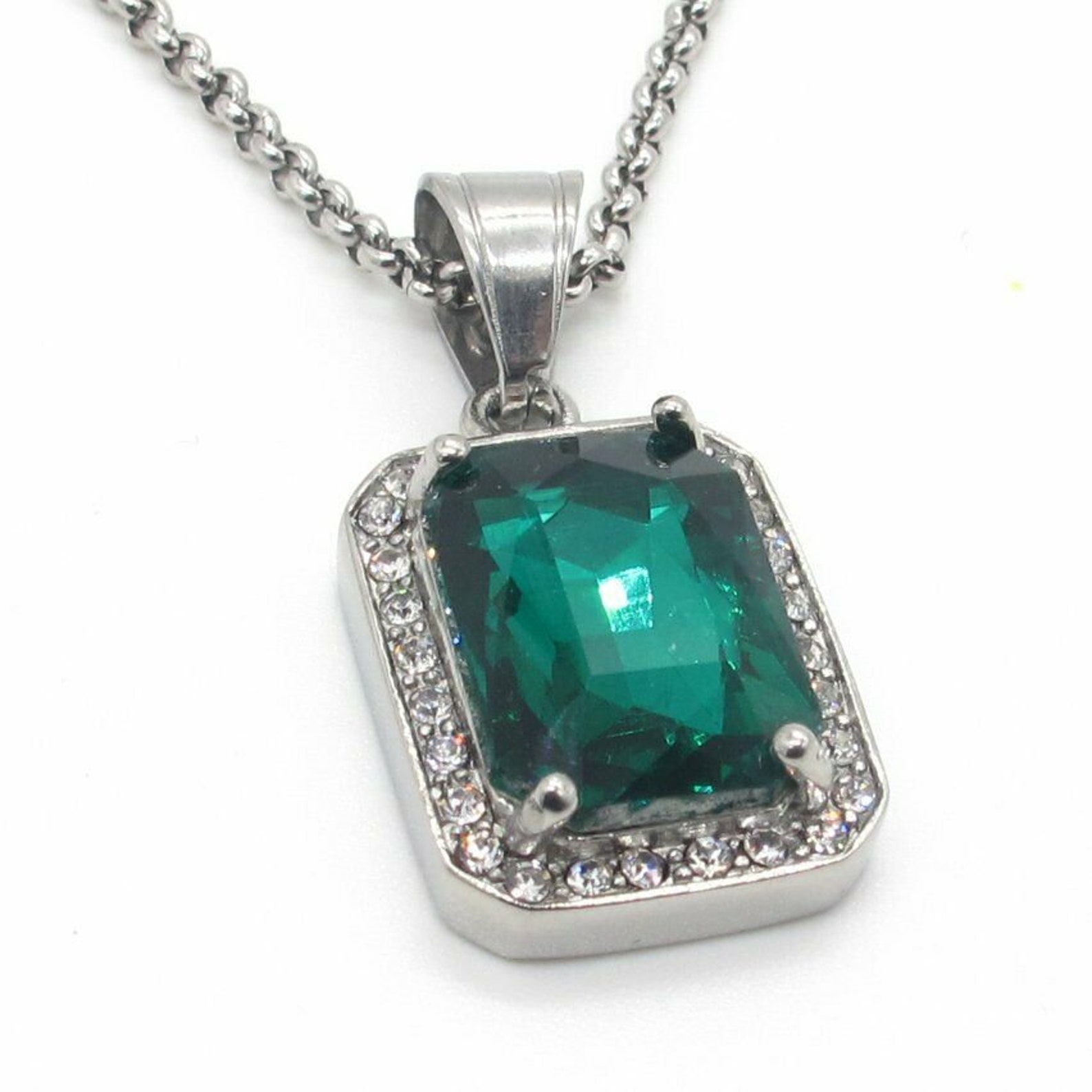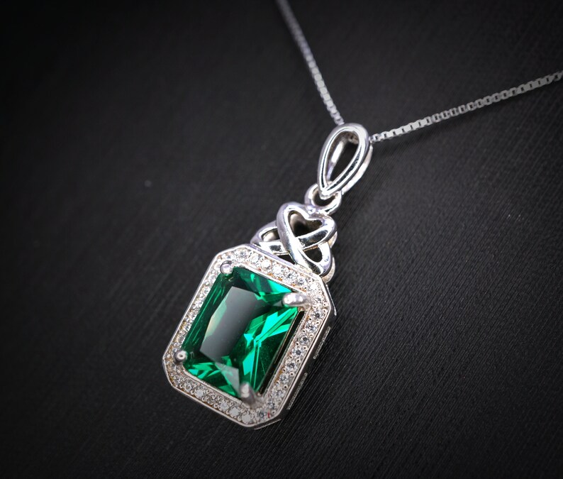 Rectangle emerald pendant clearance, Emerald Necklace Rectangle Diamond Sterling Silver 3.5 CT - Etsy clearance