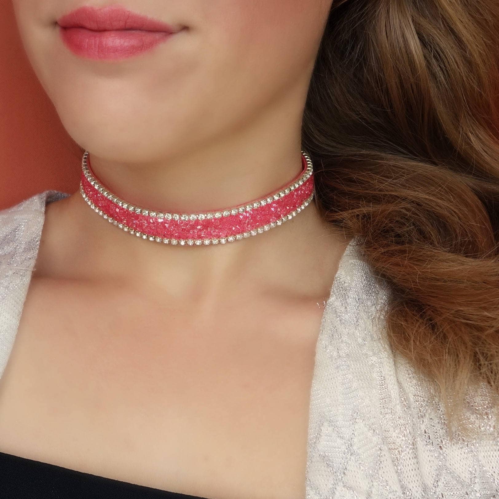 - Pink crystal choker necklace shop