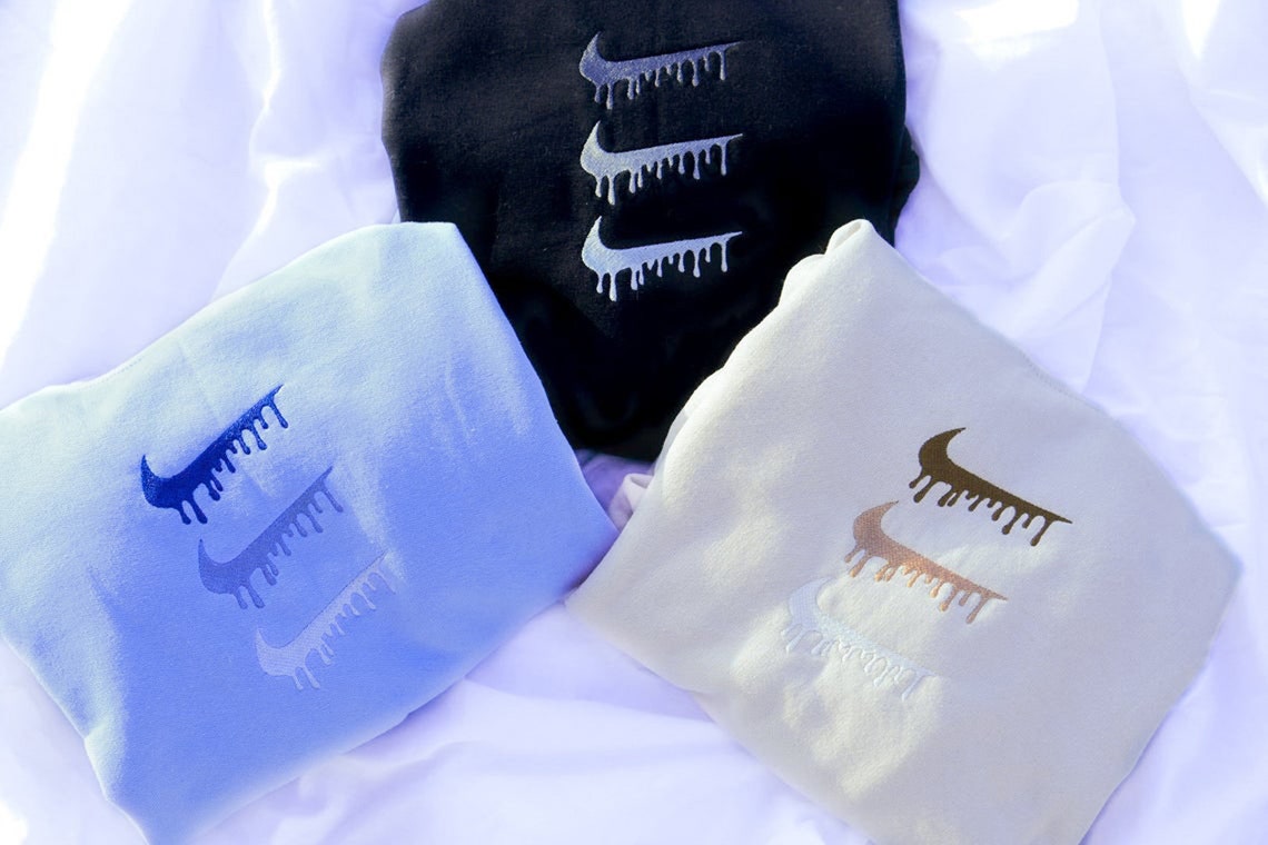 Nike drip sweatshirt clearance, Nike Inspired Drip Swoosh Dripping Swoosh Embroidered | Etsy clearance