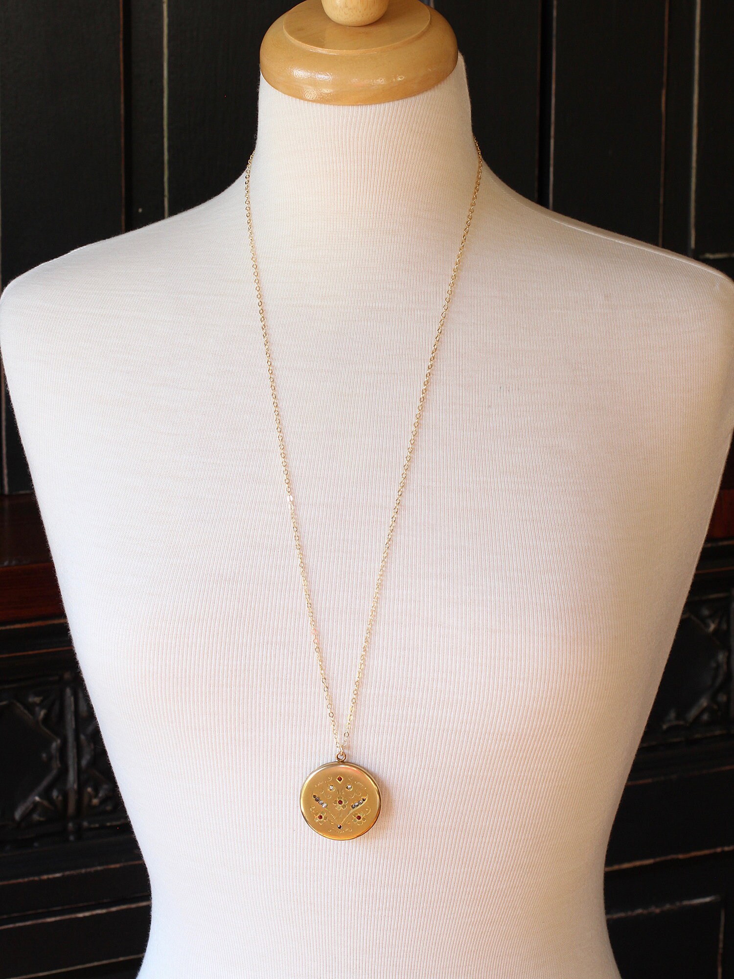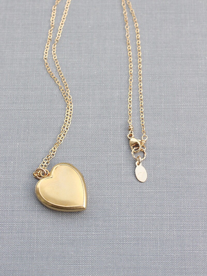 Stone locket gold clearance, Gold Heart Locket Necklace, Gold Filled Vintage Stone Accented Photo Locket - Victoria clearance