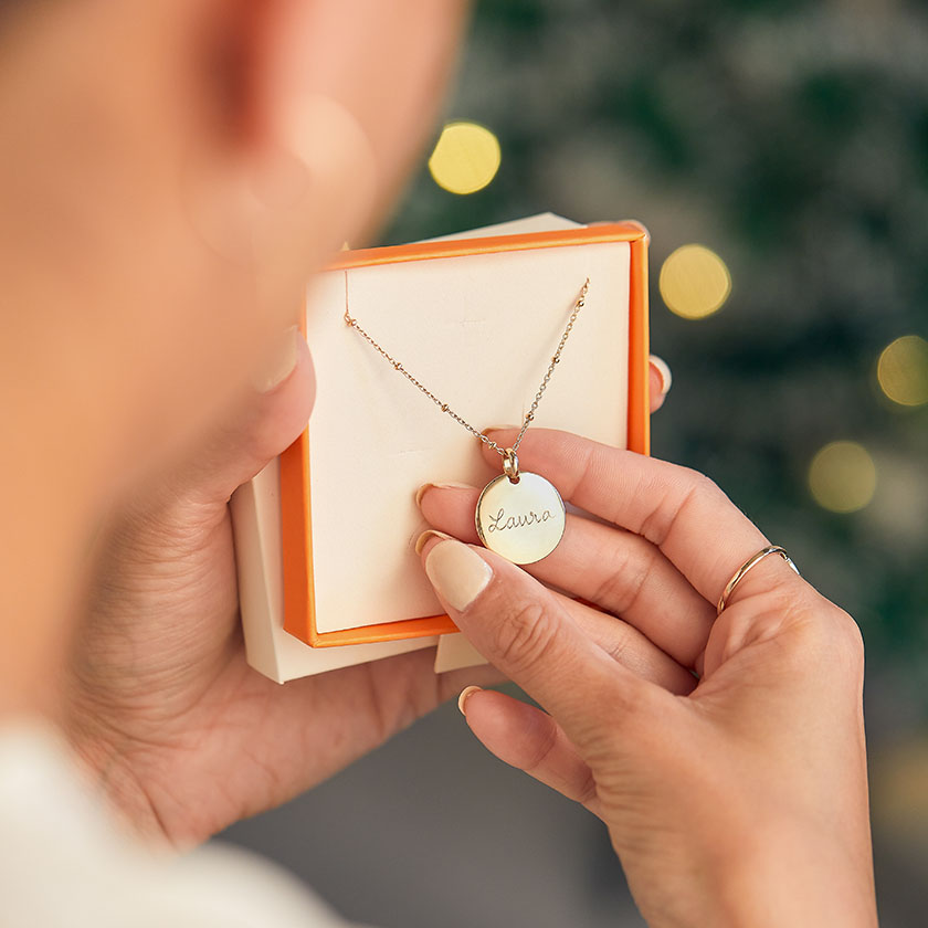 Merci maman jewellery clearance, Merci Maman Personalised Edge Charm Pendant Necklace, Gold at John Lewis & Partners clearance