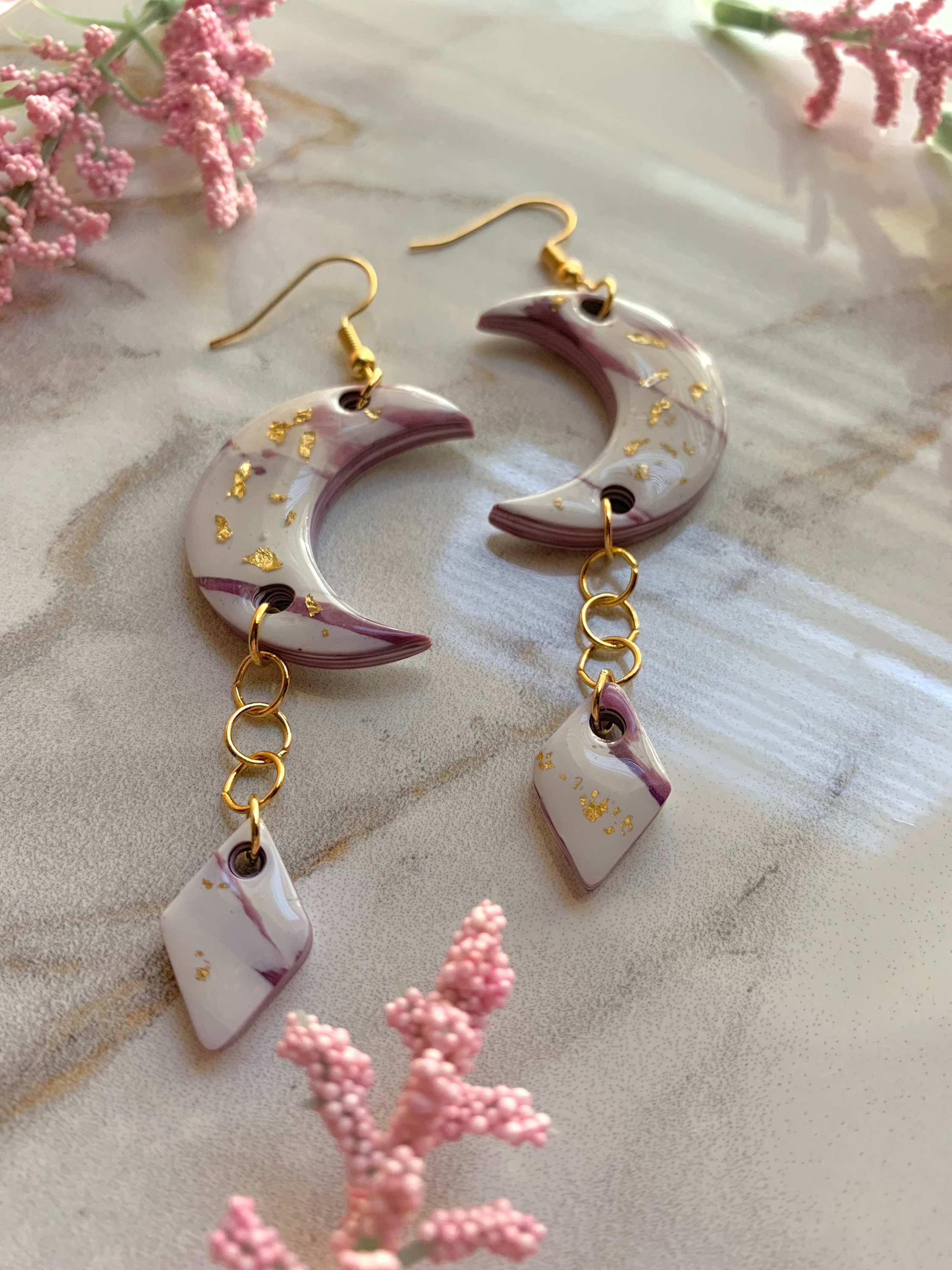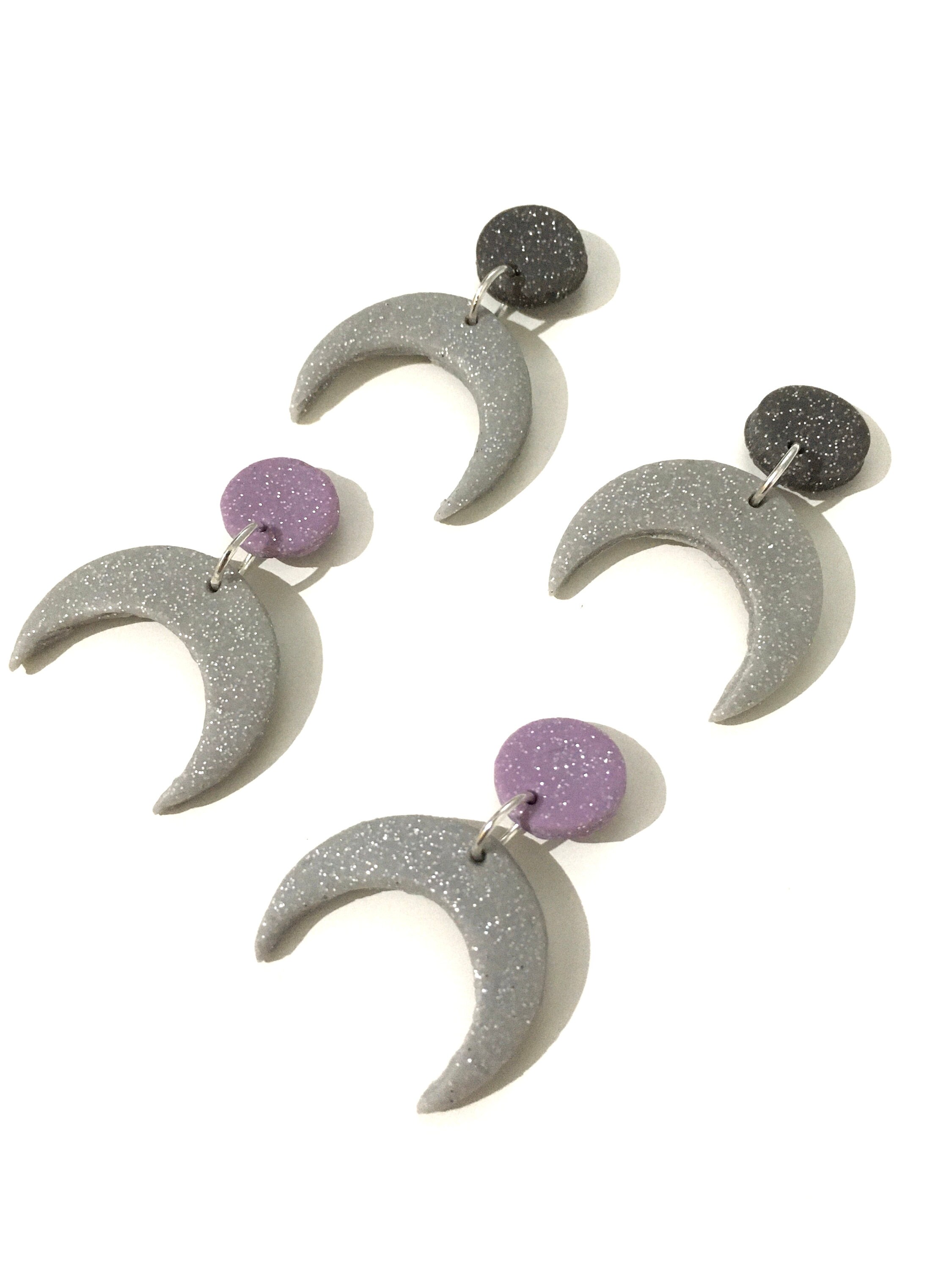 Clay moon earrings clearance, Draped Clay Moon Earrings - Etsy clearance
