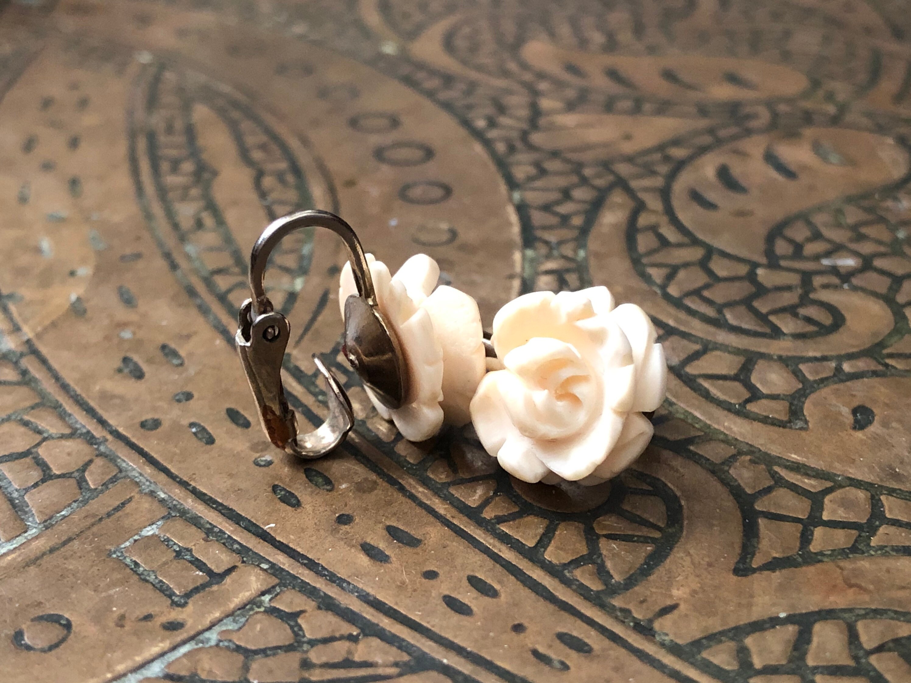 Vintage carved ivory earrings clearance, Vintage Carved Ivory Screw Back Earrings clearance