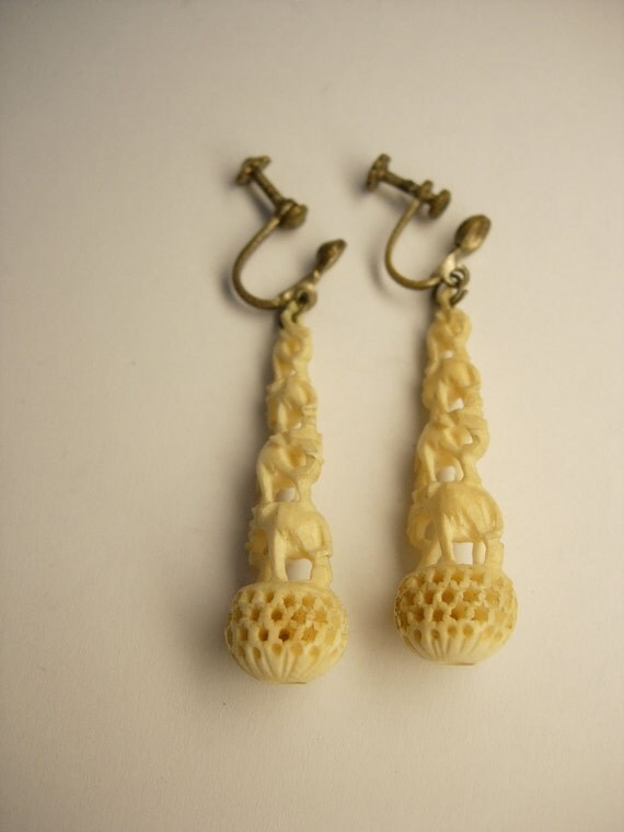 - Vintage carved ivory earrings clearance