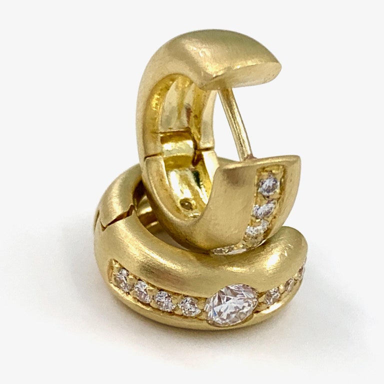 Sterns gold hoop earrings clearance, H. Stern 0.64 Carat Diamond Huggie Hoop Earrings in Brushed 18 Karat Yellow Gold at 1stDibs clearance