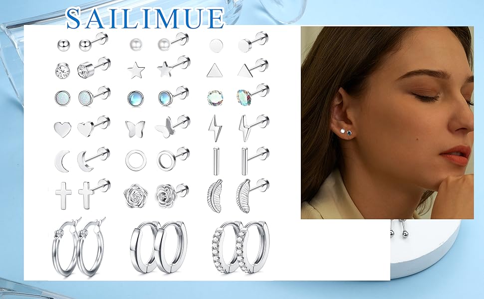 - Surgical steel flat back stud earrings clearance