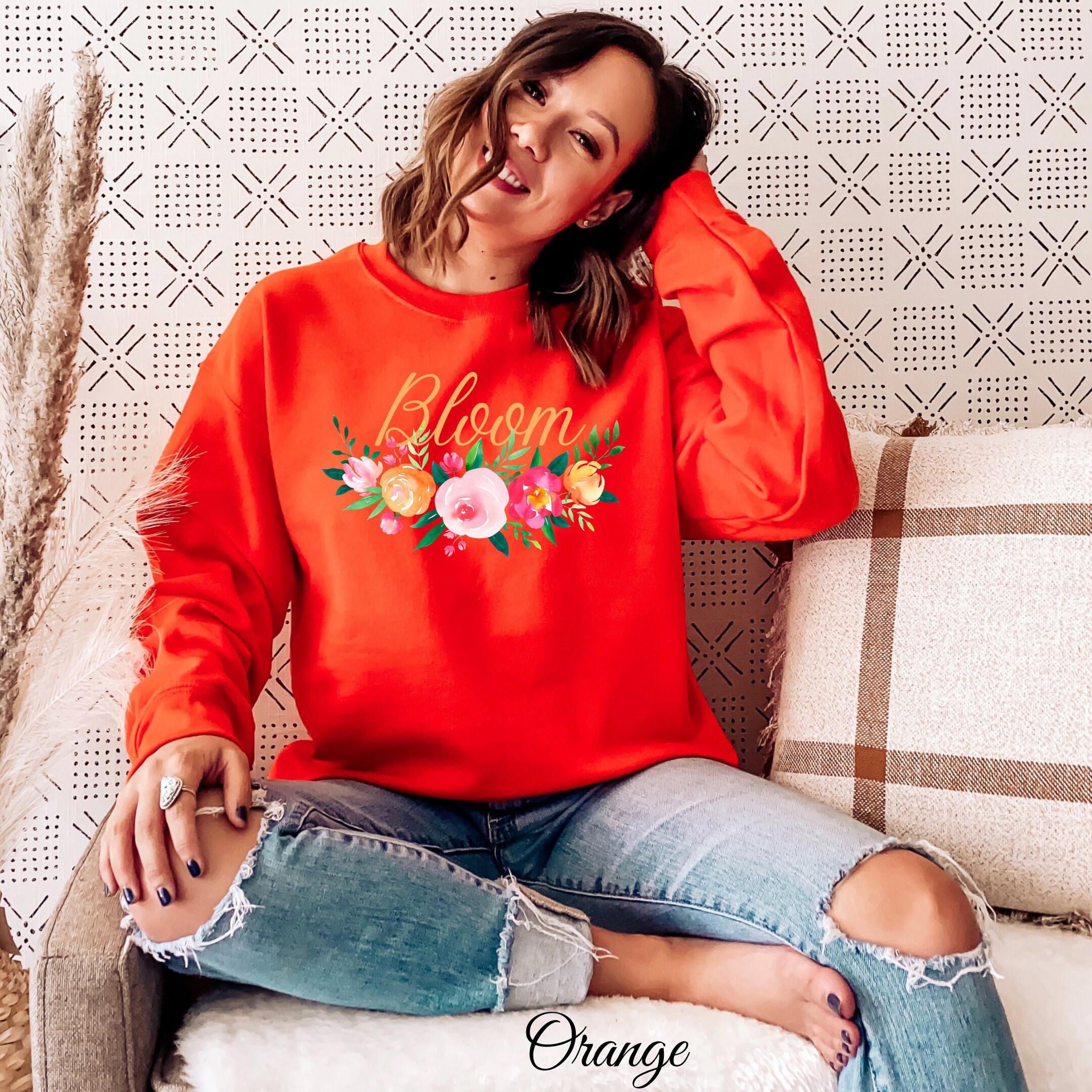M and s sweatshirt clearance, Bloom Sweatshirt Orange Pullover Sweatshirt Spring - Etsy UK clearance