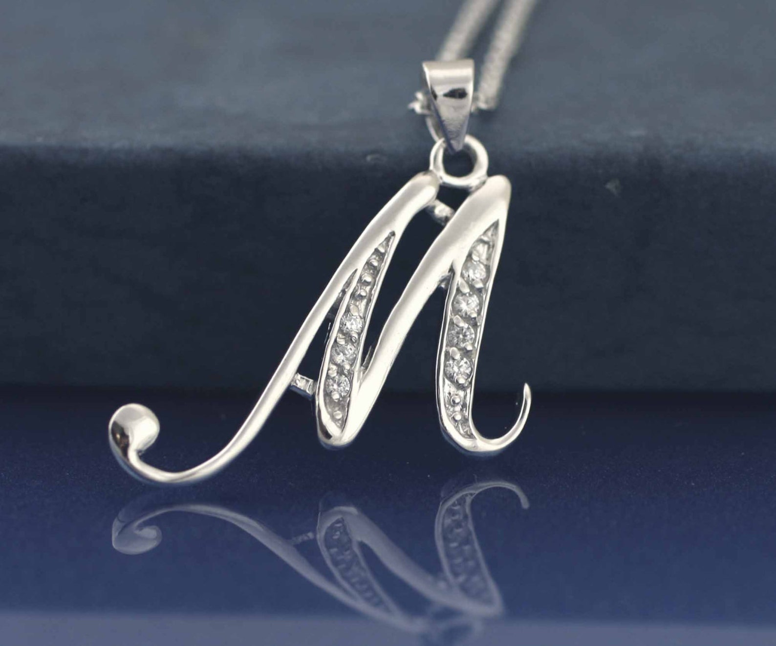 - Silver letter m necklace shop
