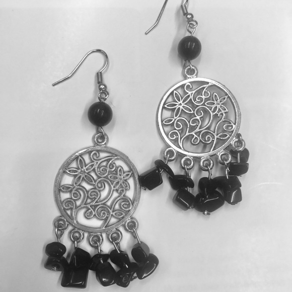 - Black stone long earrings clearance