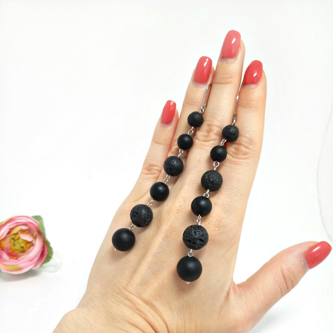 Black stone long earrings clearance, Black bead earrings Long black stone earrings Long Drop | Etsy clearance