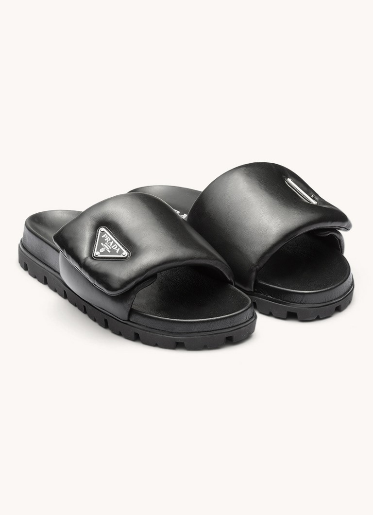 Dalai lama prada slipper clearance, Prada Gewatteerde slipper van leer ⢠Zwart ⢠de Bijenkorf clearance
