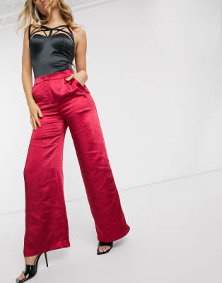 Red satin trousers clearance