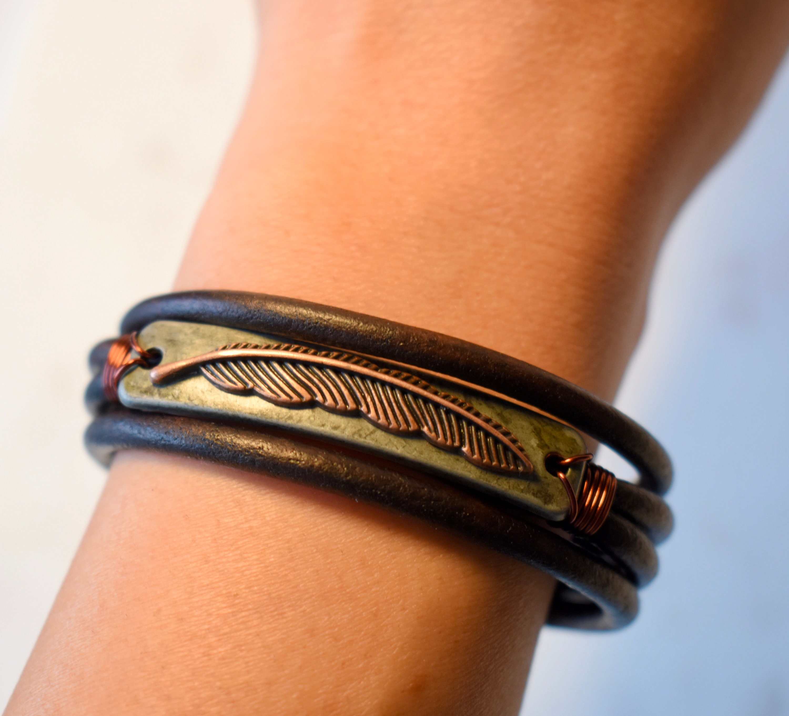 Real feather bracelet clearance, Feather Leather Bracelet, Feather Cuff, Feather Bracelet, Magnetic Clasp clearance