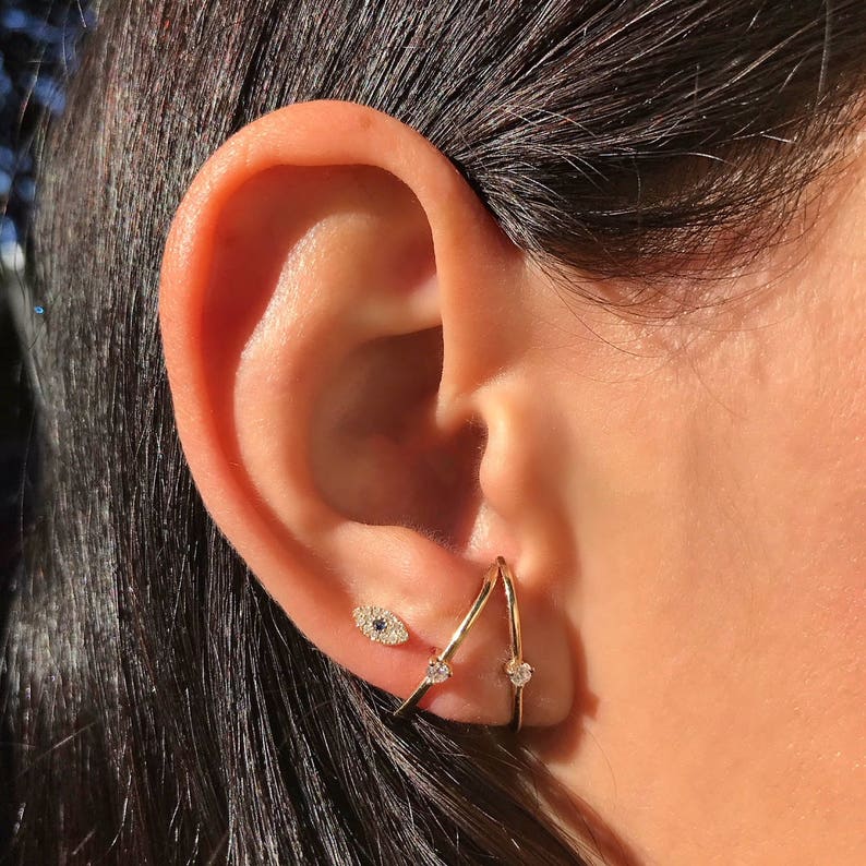 Gold cartilage stud clearance, Triple helix gold hoops || cartilage piercings || opal || triple cartilage | Earings piercings clearance