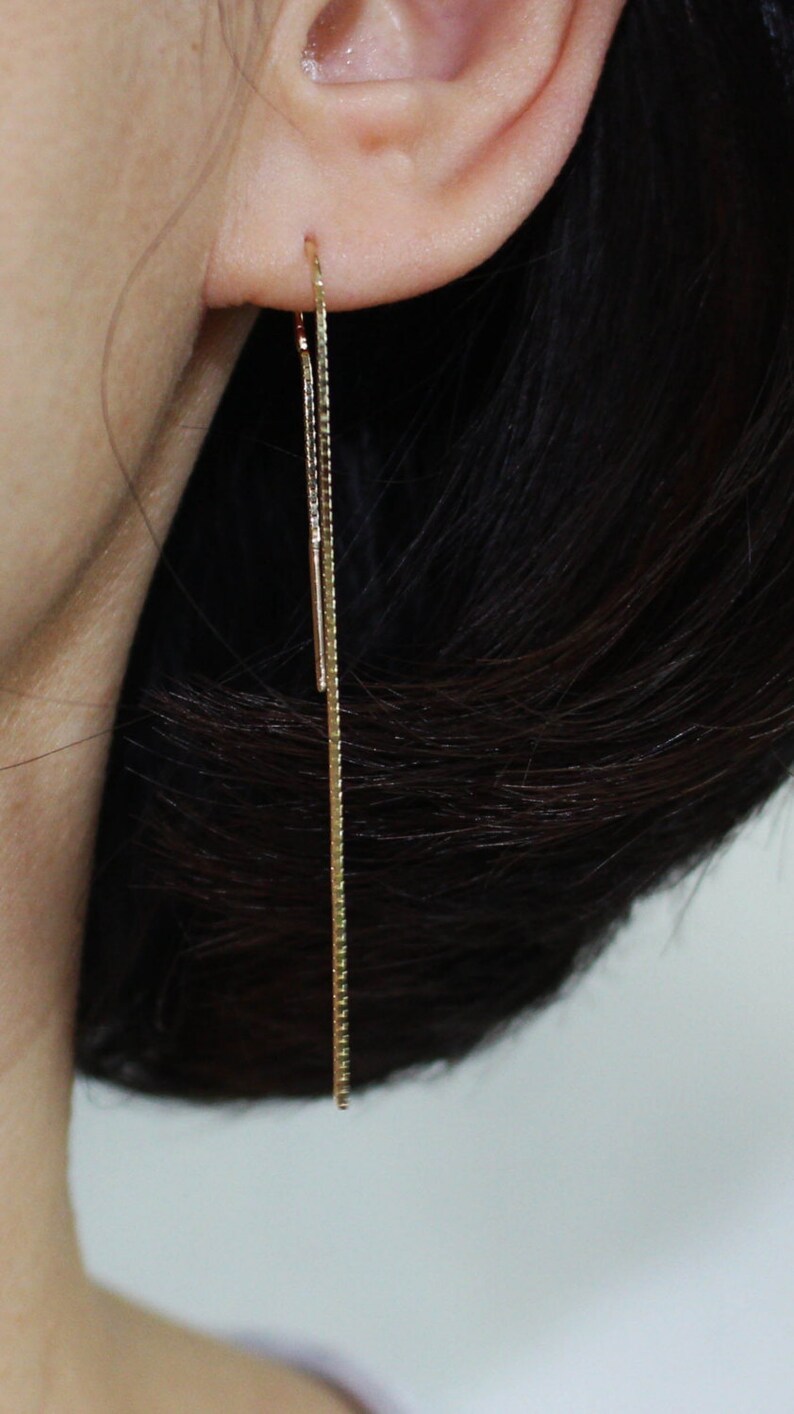 Gold ear threader earrings clearance, 14K Solid Gold Threader Earrings 14K Long Threader Earrings - Etsy clearance