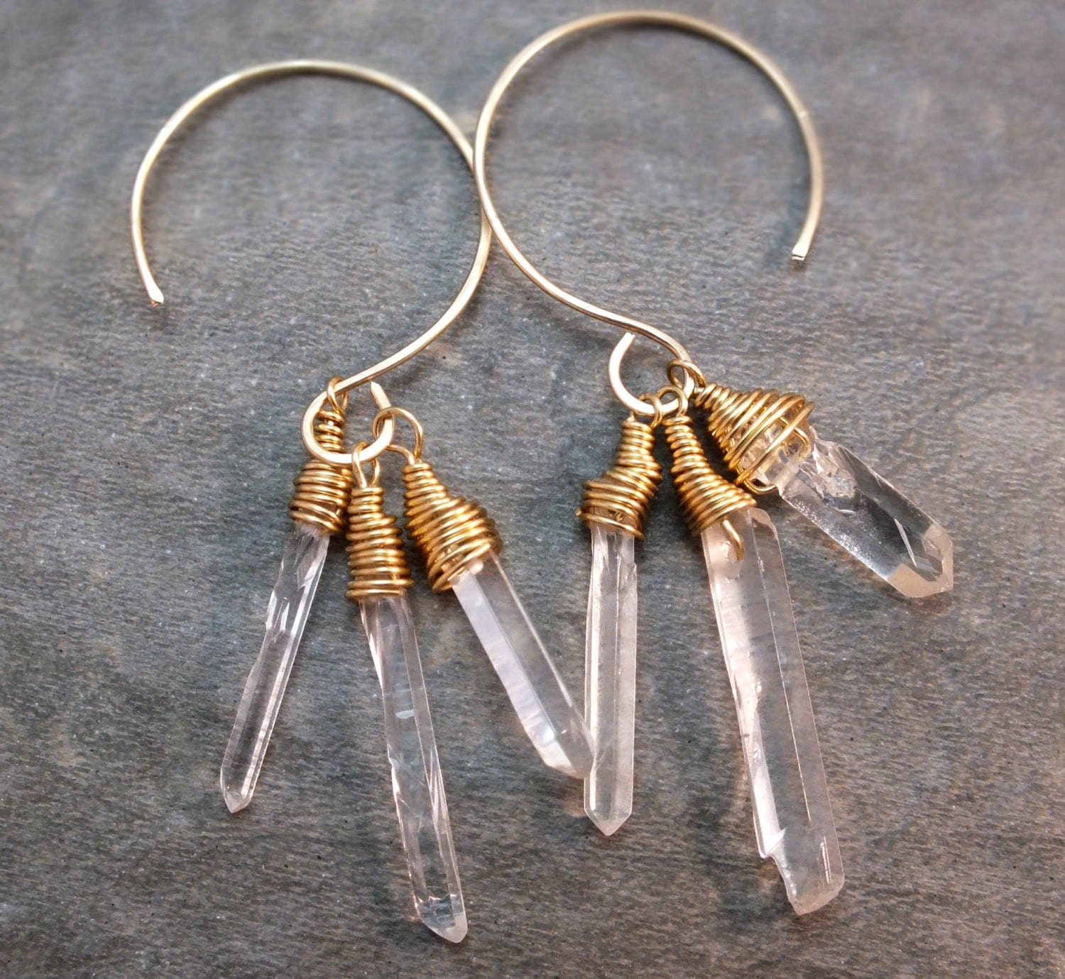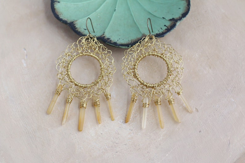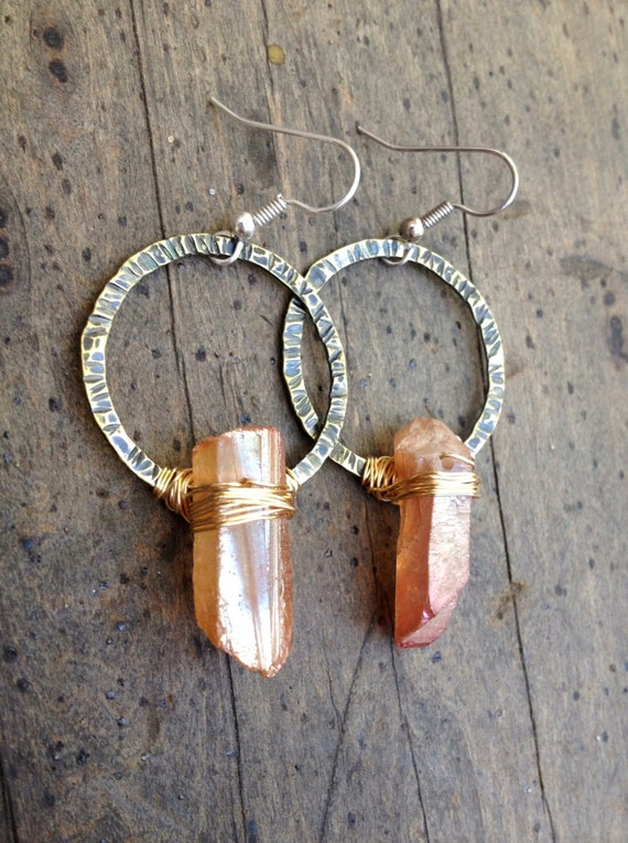 Raw crystal earrings clearance, Raw Crystal Earrings Raw Quartz Earrings Hammered Brass Hoops | Etsy clearance