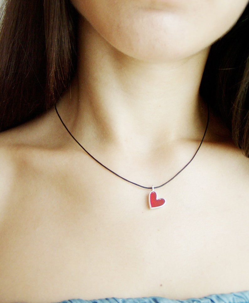 - Red heart necklace silver shop