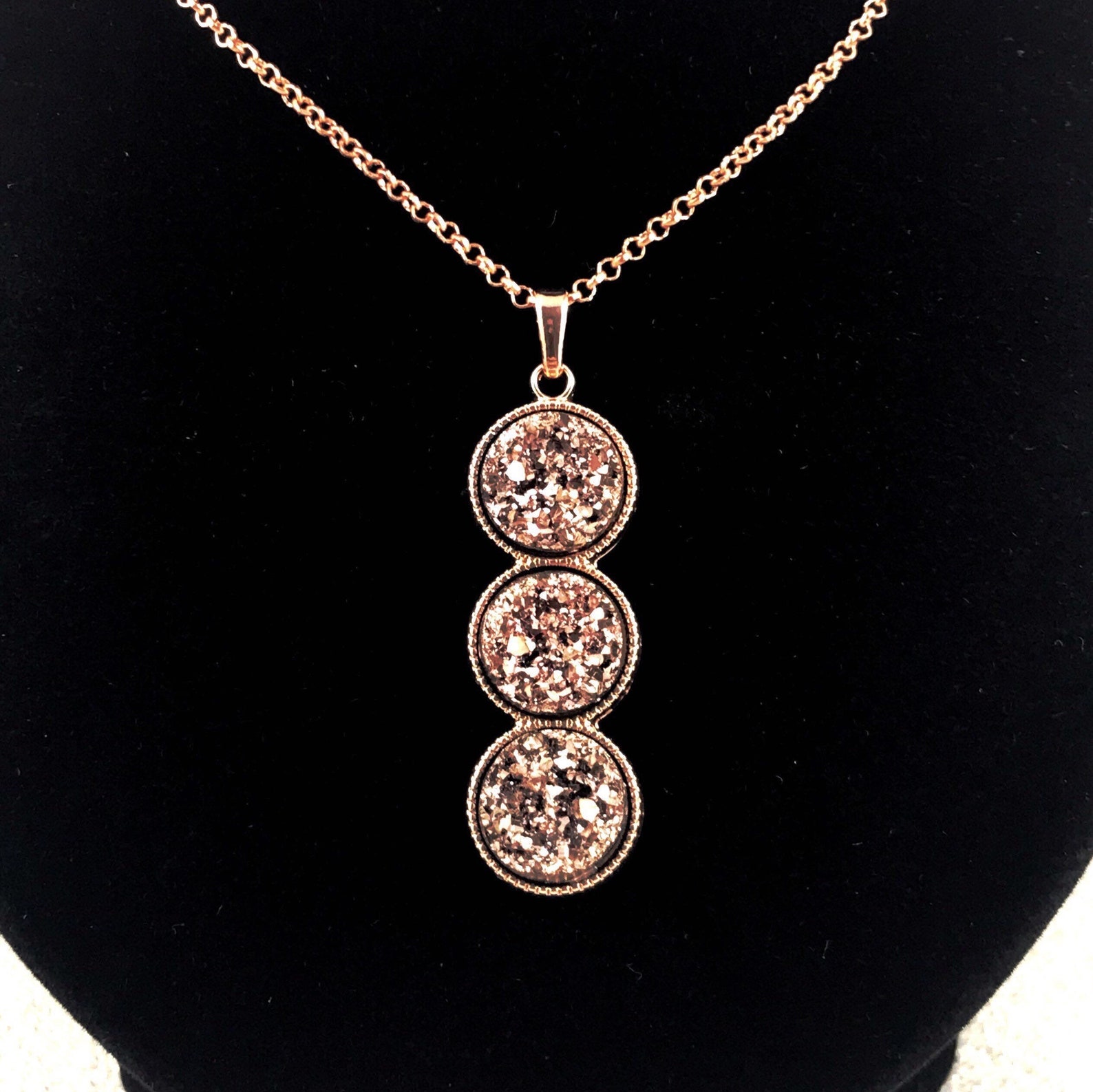 - Rose gold druzy necklace
