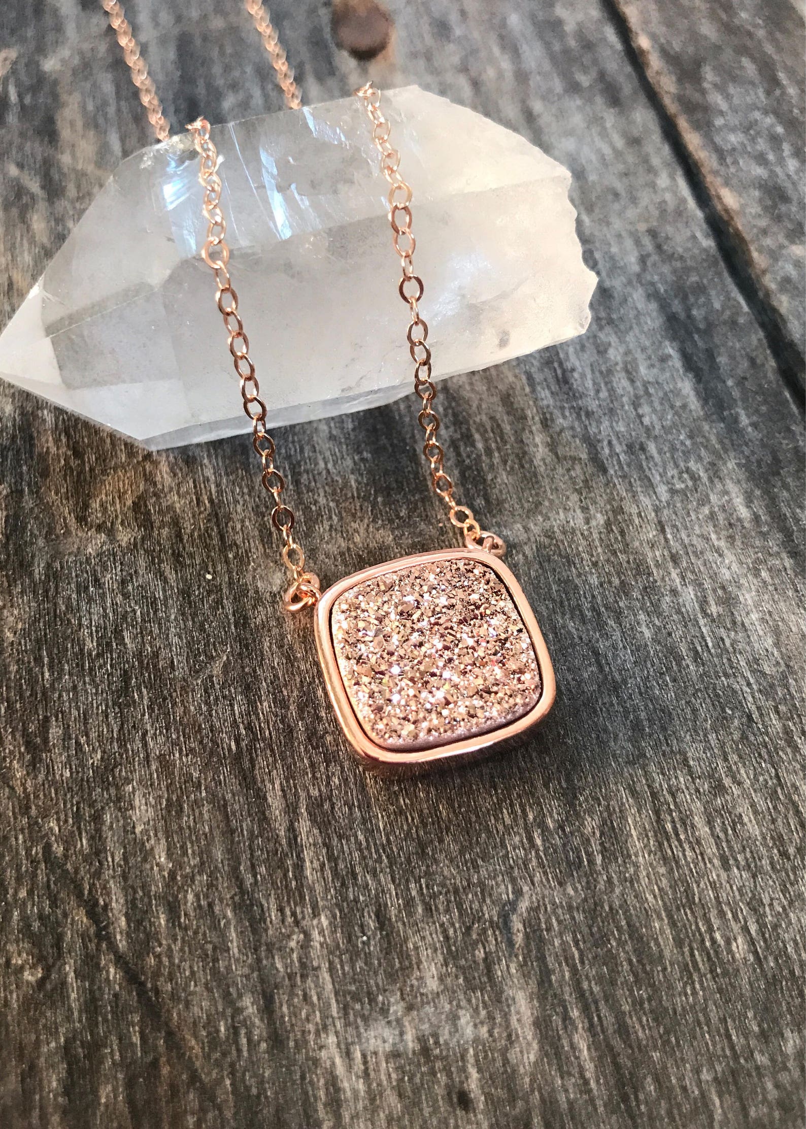 - Rose gold druzy necklace shop