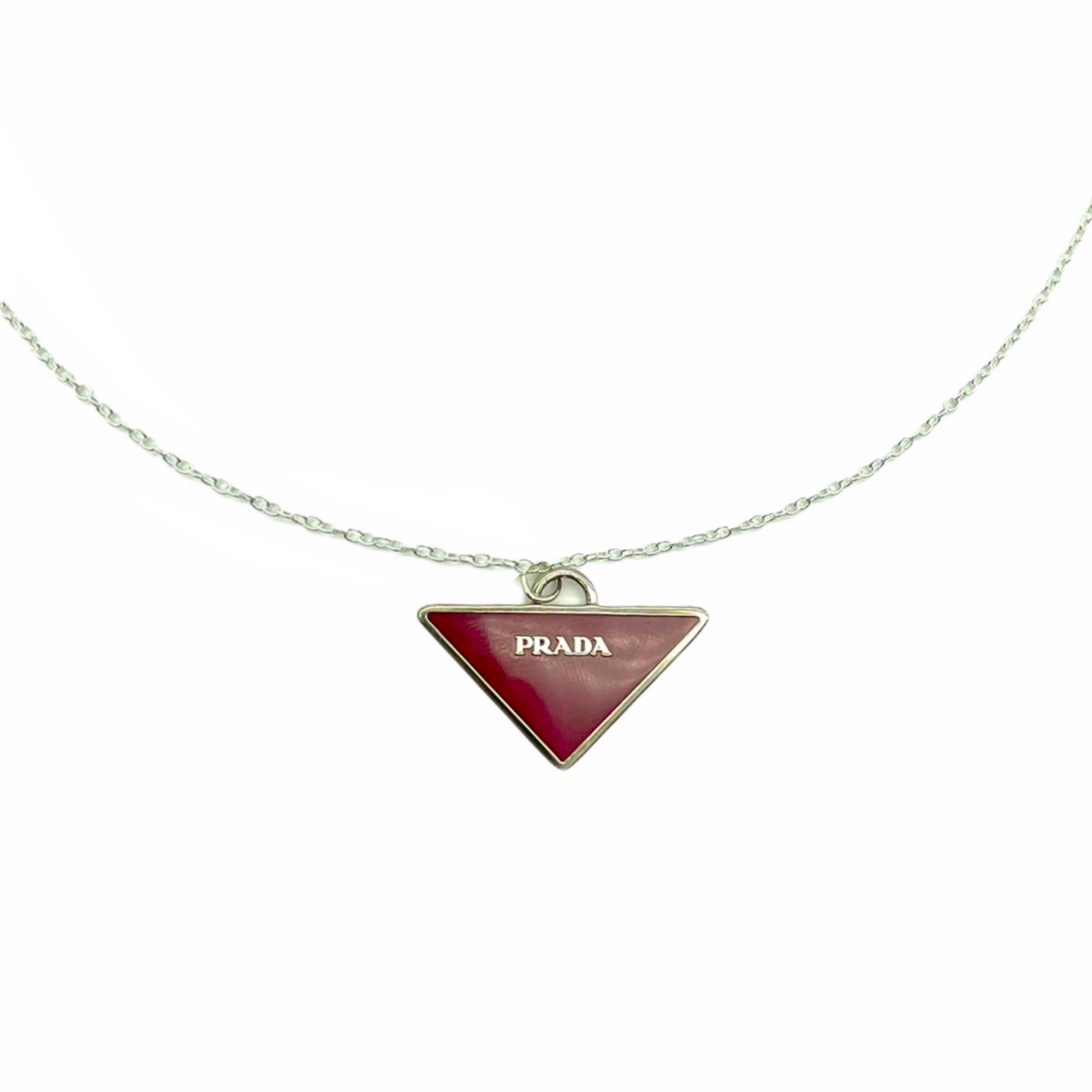 Prada reworked necklace clearance, Reworked Prada Plaque Necklace in Silver and Maroon â Nitryl clearance