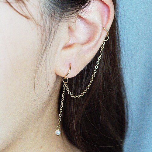 - Stud earring with chain and cuff shop