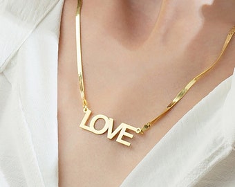 Herringbone name chain clearance, Herringbone Necklace with Name Plate | FARUZO clearance