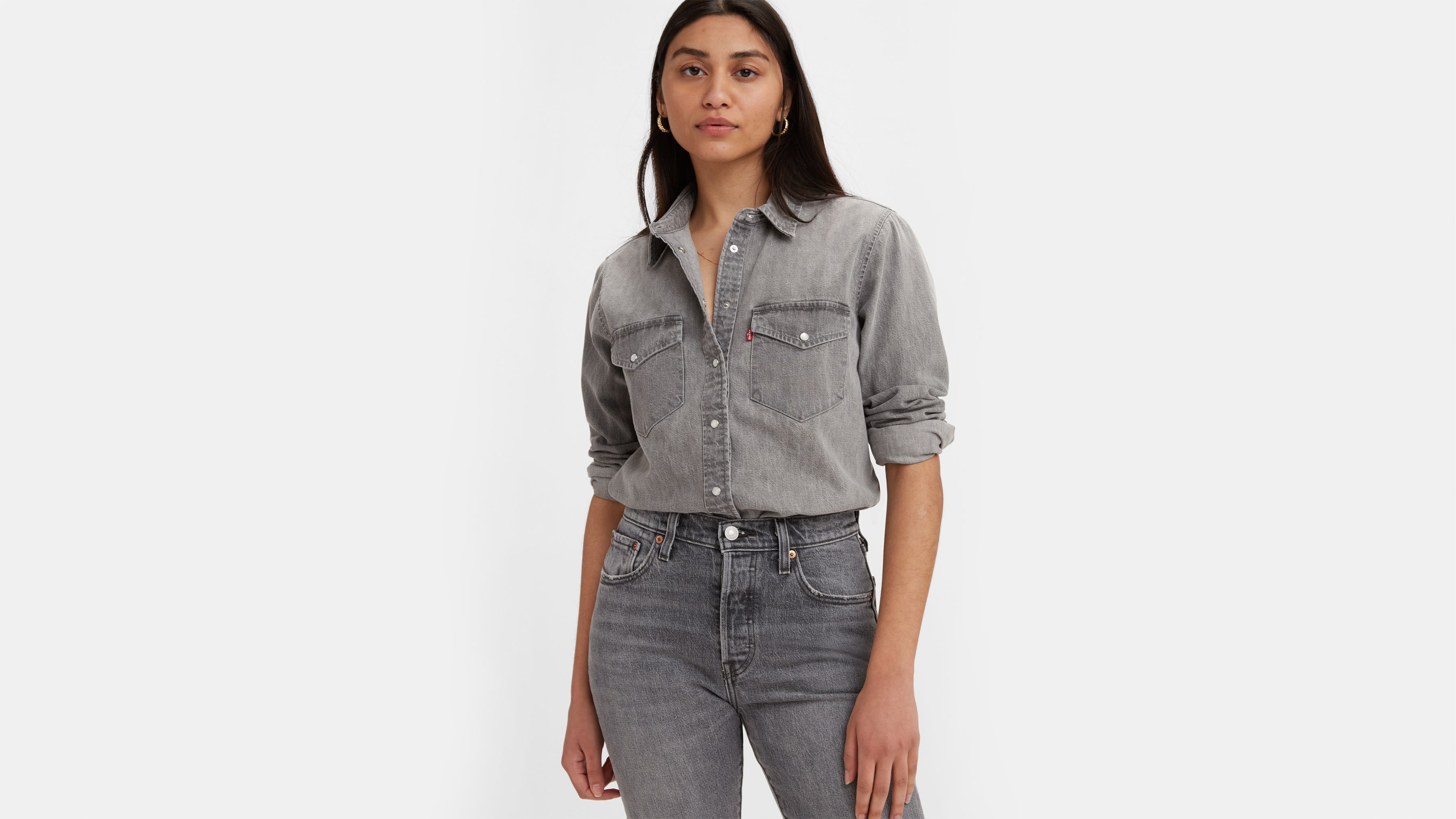 - Women's gray denim shirt shop