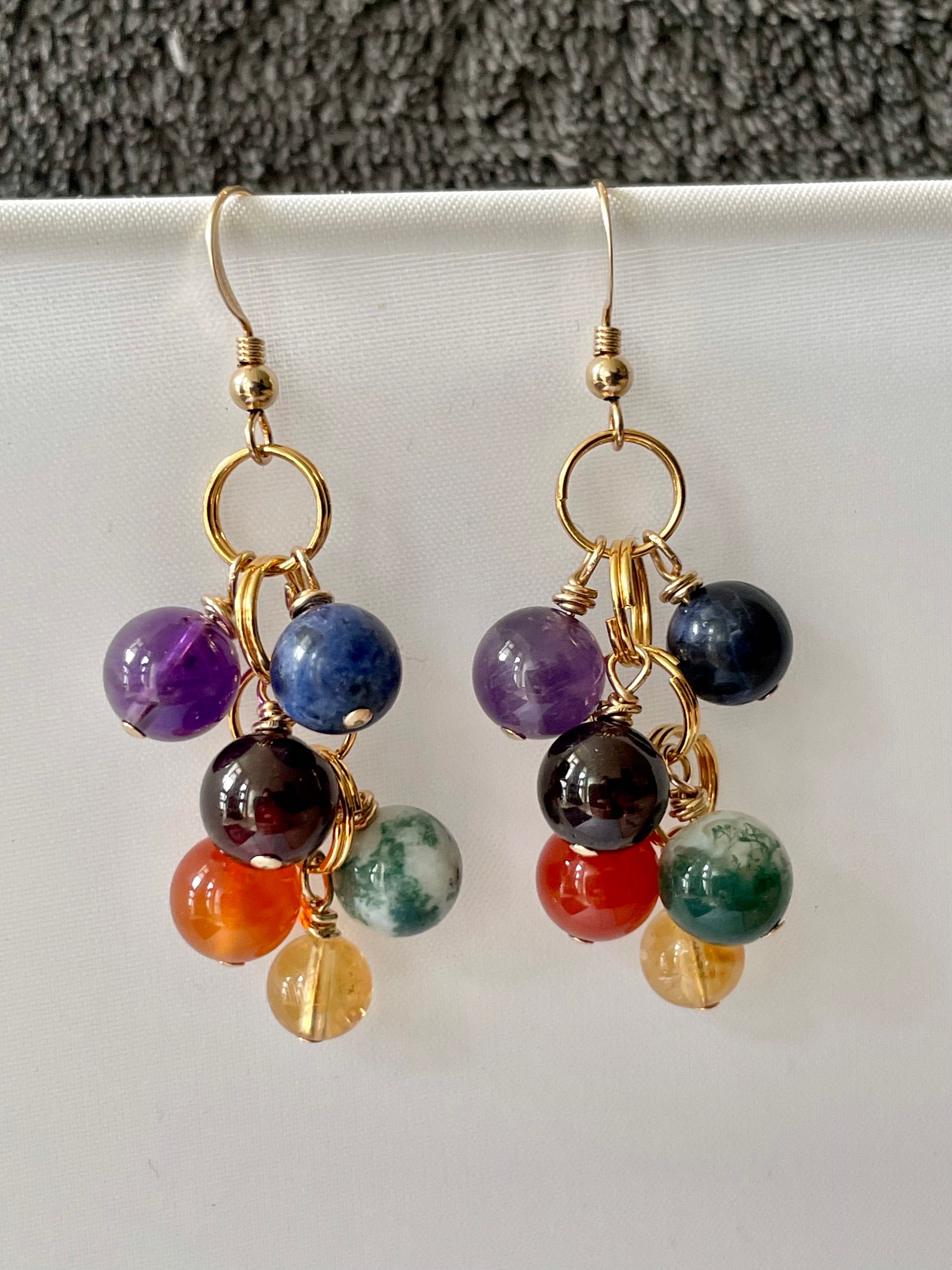 Rainbow stone earrings clearance, Mixed rainbow gemstone cluster earrings Handmade jewelry with | Etsy clearance